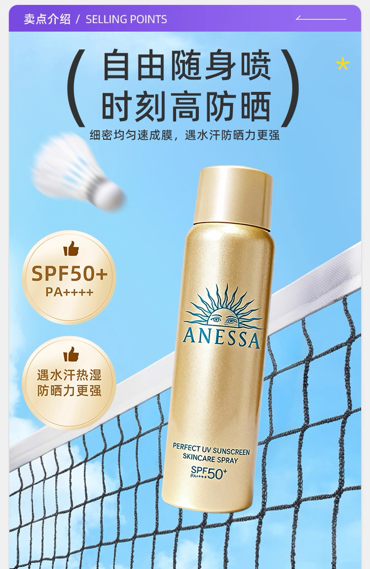 【安耐晒新版防晒喷雾】全新升级小金瓶 高倍防晒细腻喷雾60ml*1