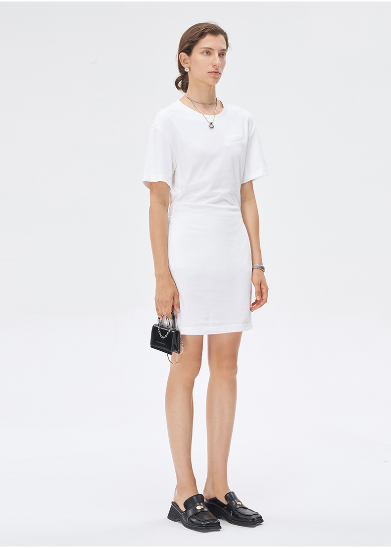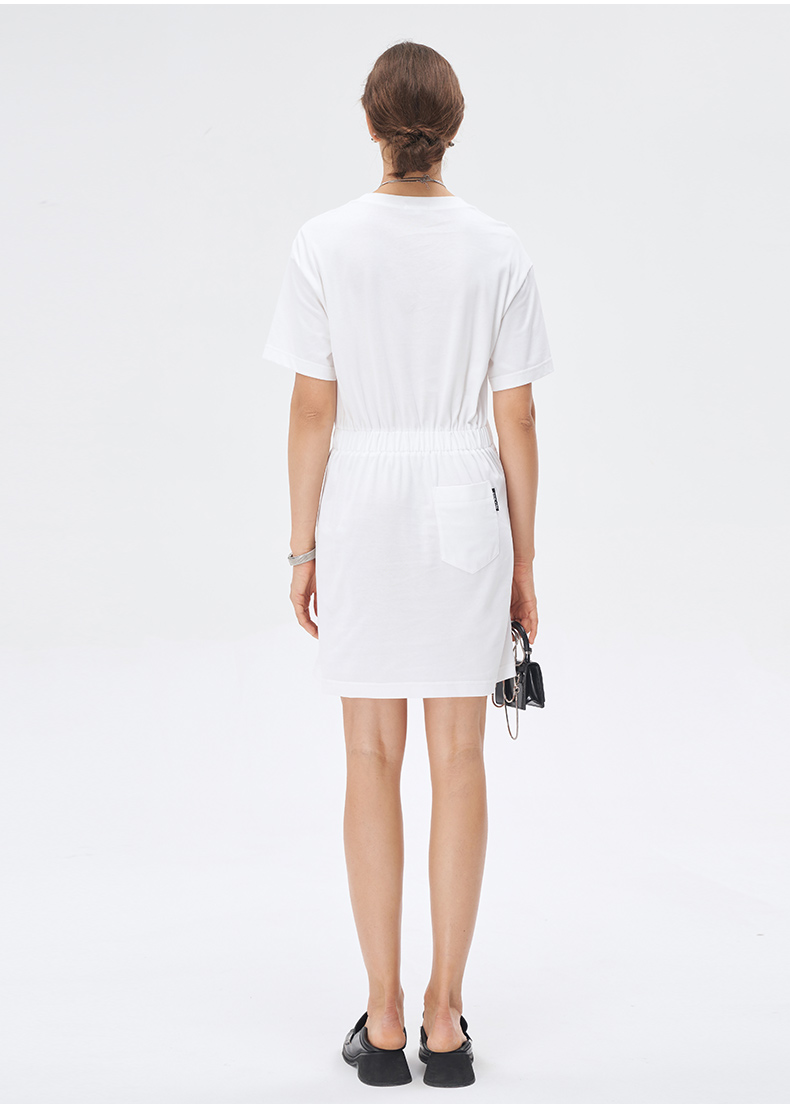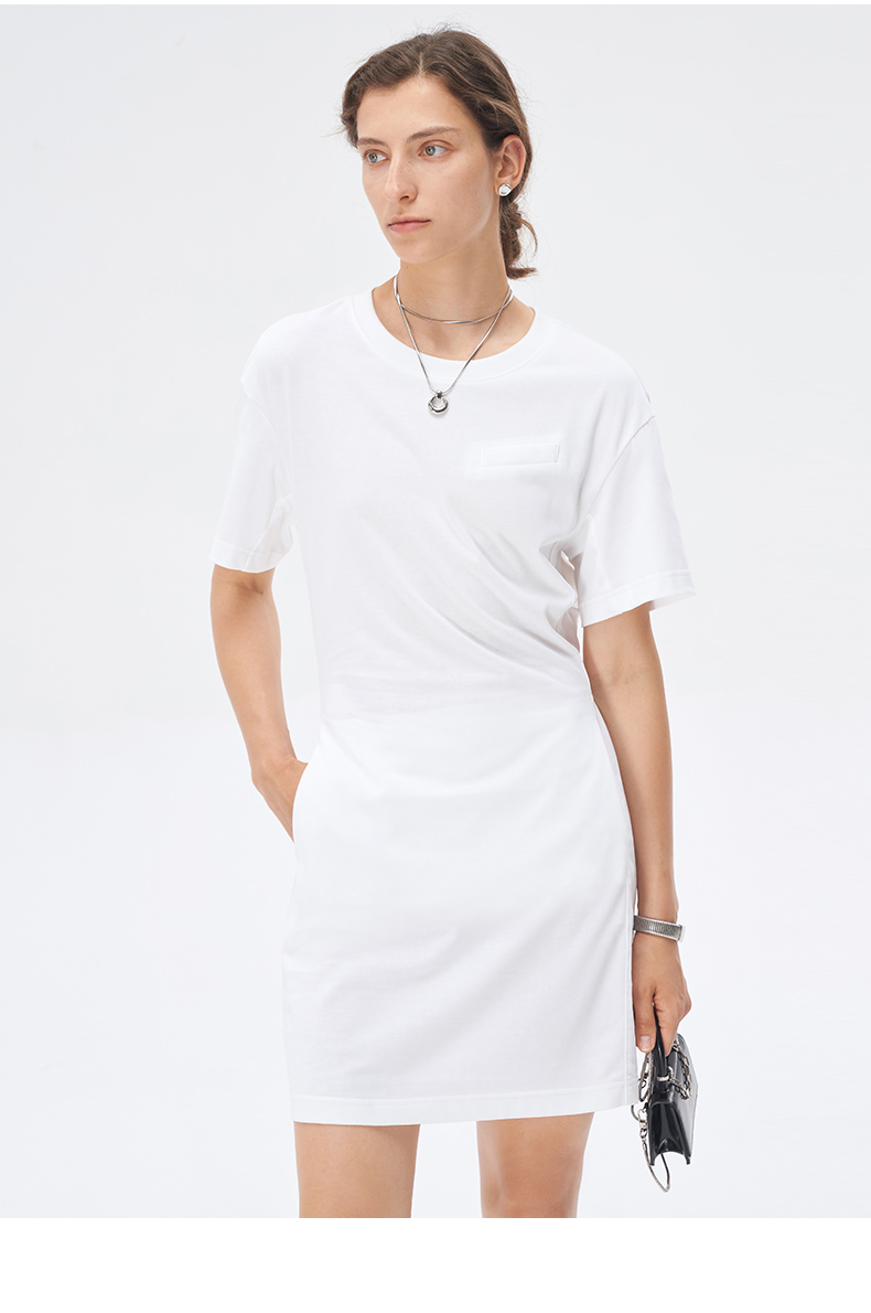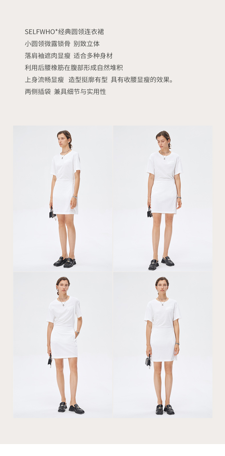 Self Who美国进口面料白色连衣裙2023新款夏季圆领别致落肩袖裙子