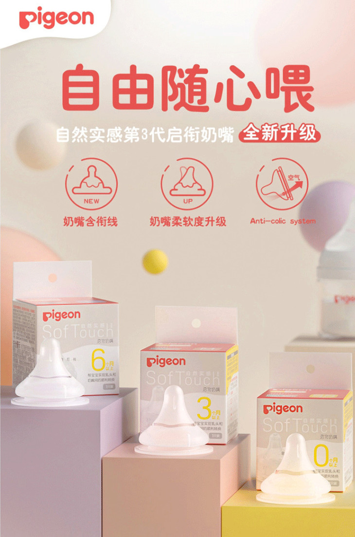 贝亲自然实感Ⅲ宽口径启衔奶嘴