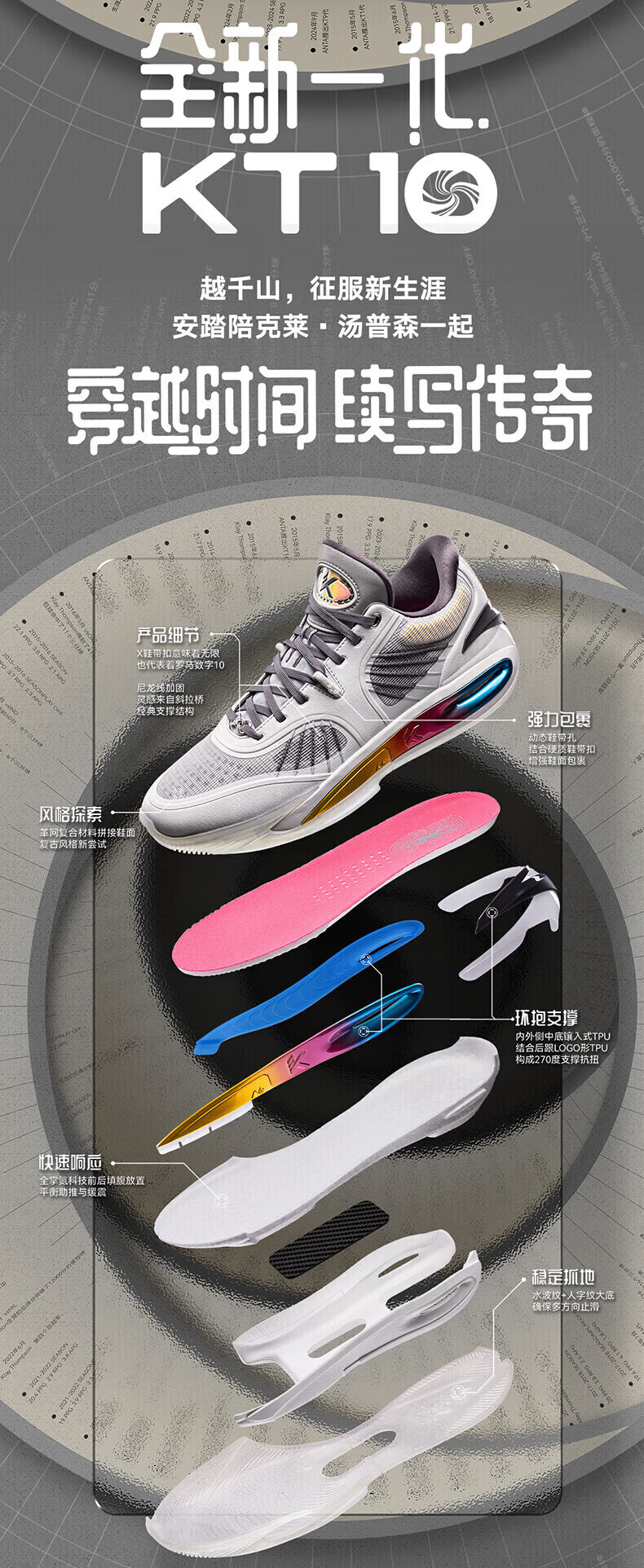 安踏KT10篮球鞋男氮科技汤普森实战训练碳板中帮运动鞋112441101