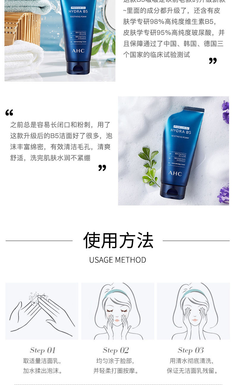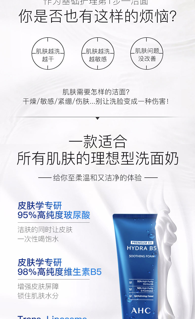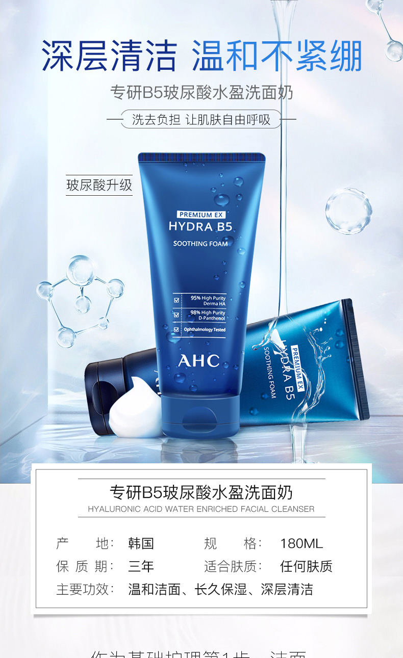 AHC爱和纯 B5玻尿酸保湿舒缓洗面奶洁面乳 180ml/支