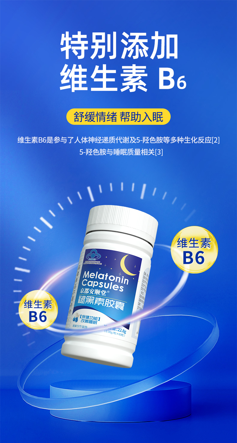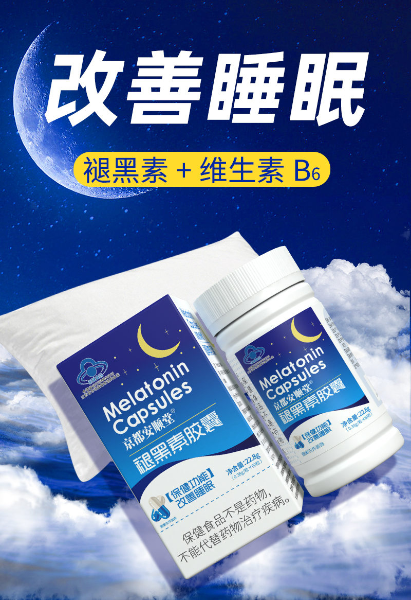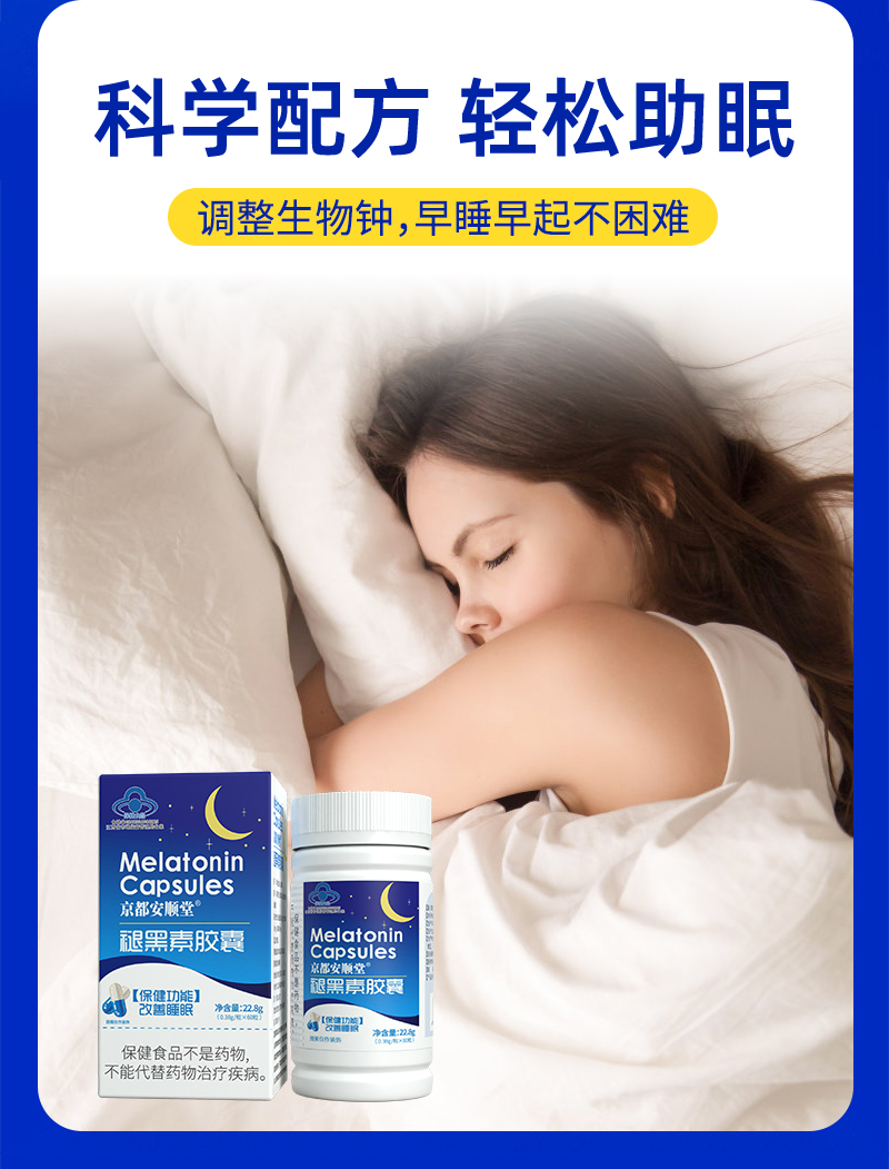 【蓝帽认证 改善睡眠】京都安顺堂褪黑素胶囊 褪黑素+维生素B6 享受好睡眠 60粒/瓶