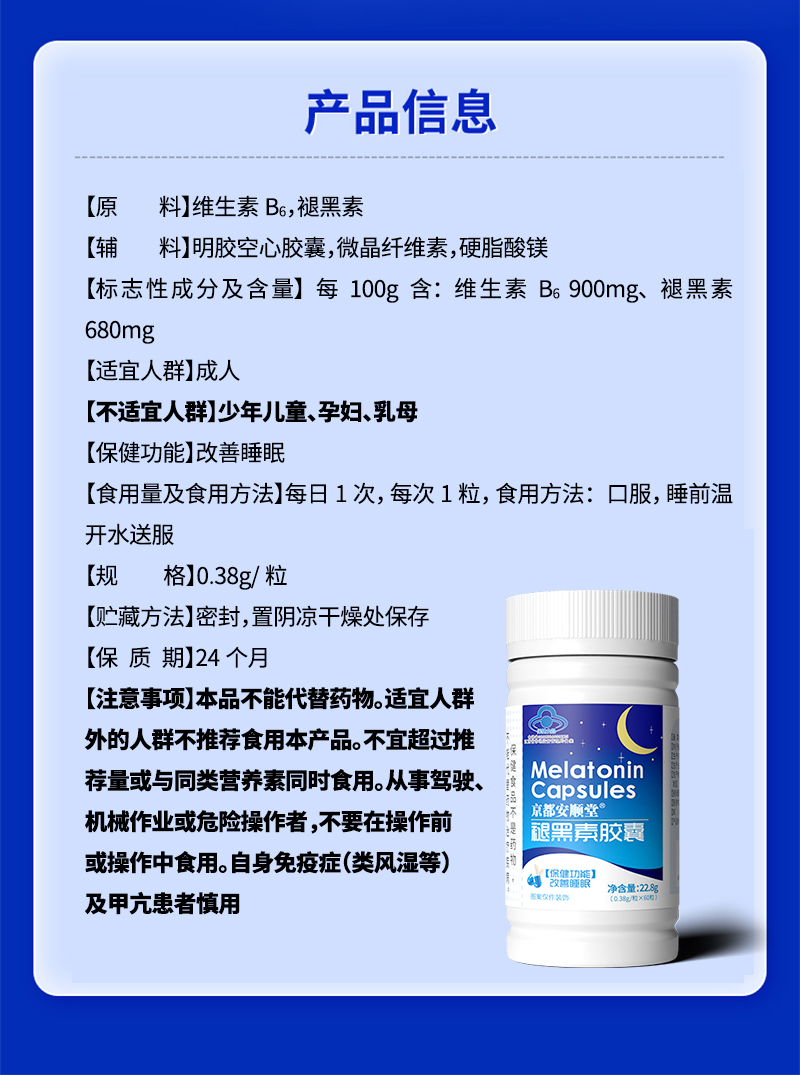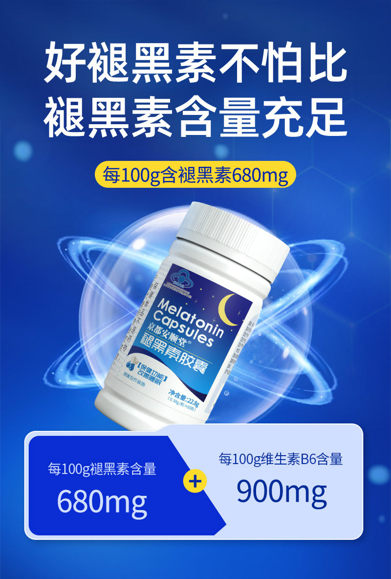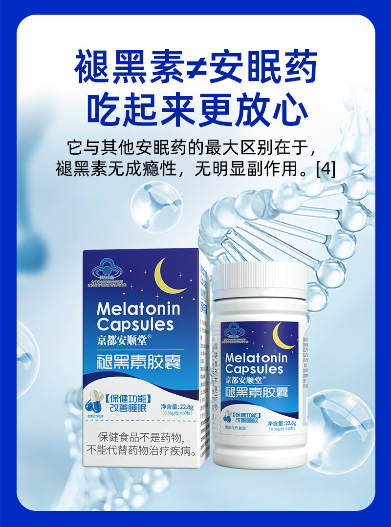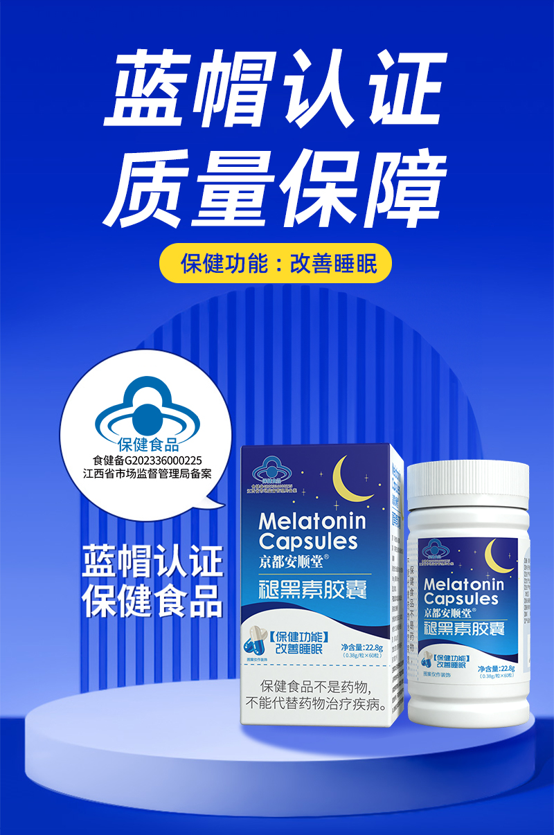 【蓝帽认证 改善睡眠】京都安顺堂褪黑素胶囊 褪黑素+维生素B6 享受好睡眠 60粒/瓶
