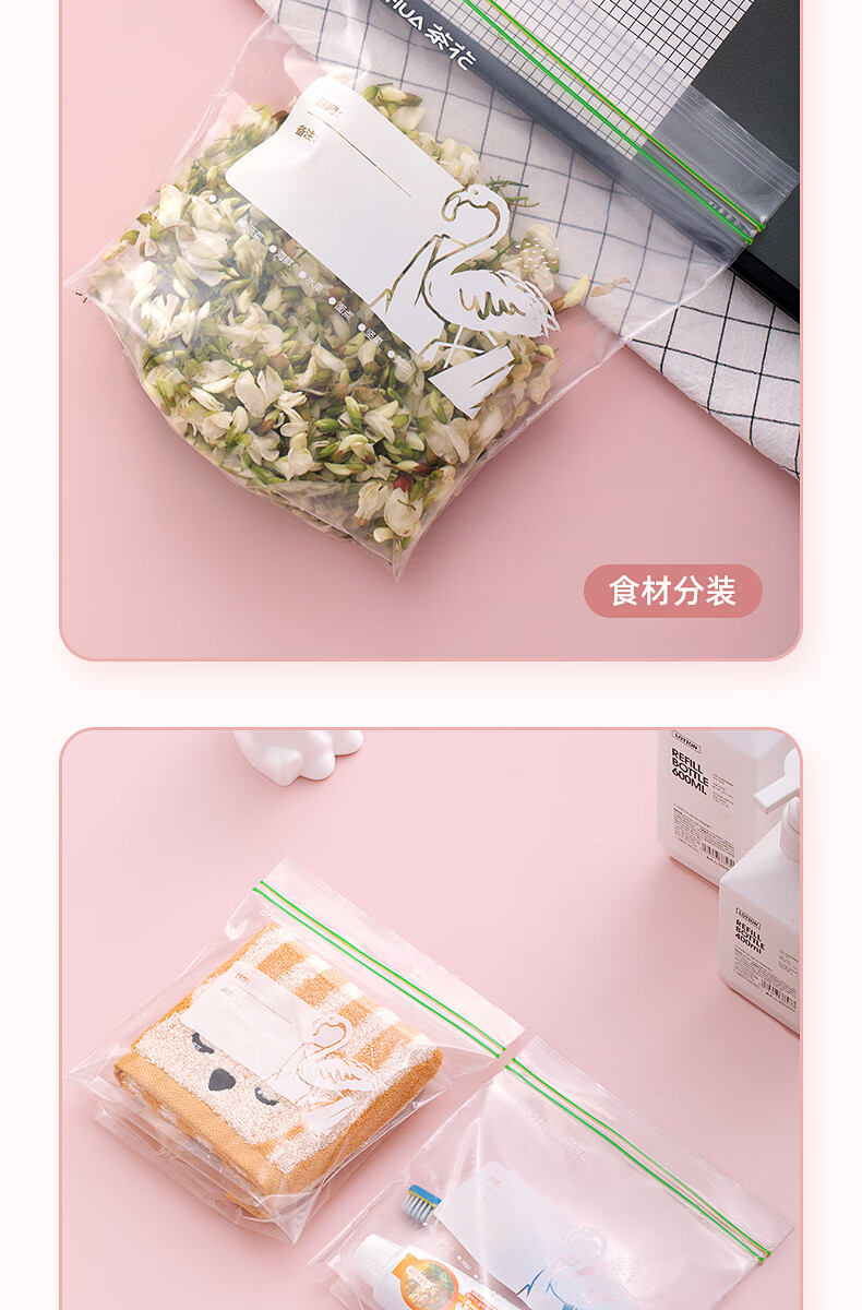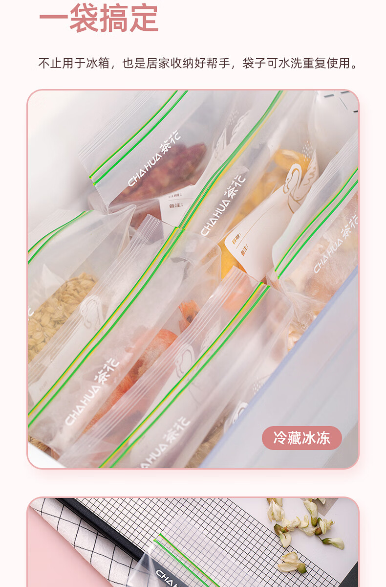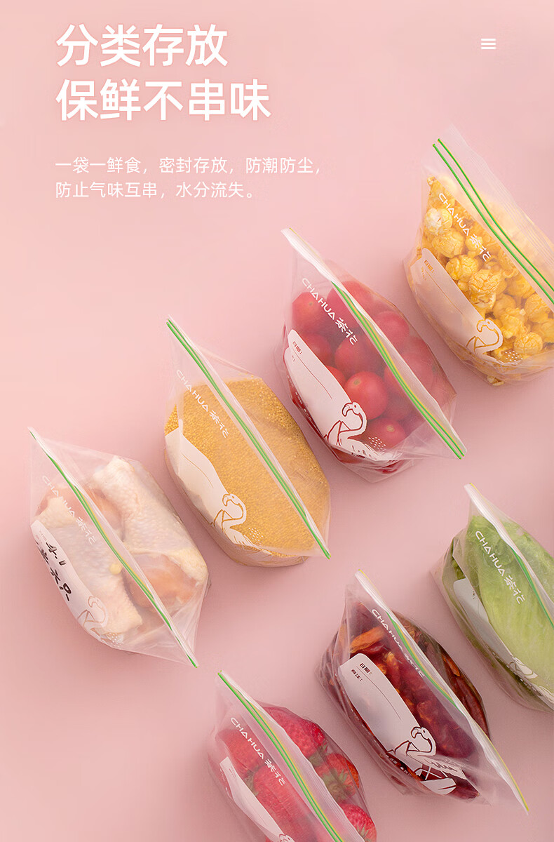 茶花 990091生物系列食物密封保鲜袋特大号立体款15只*2
