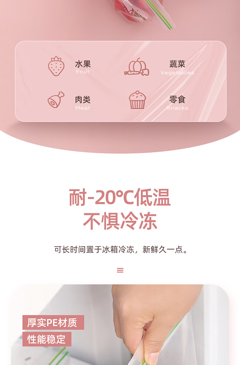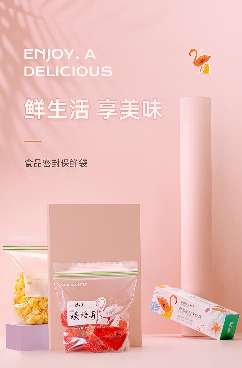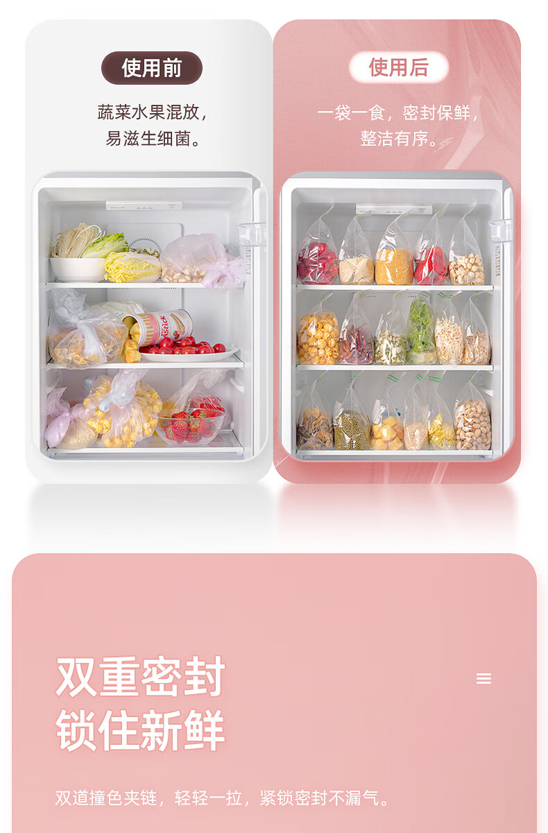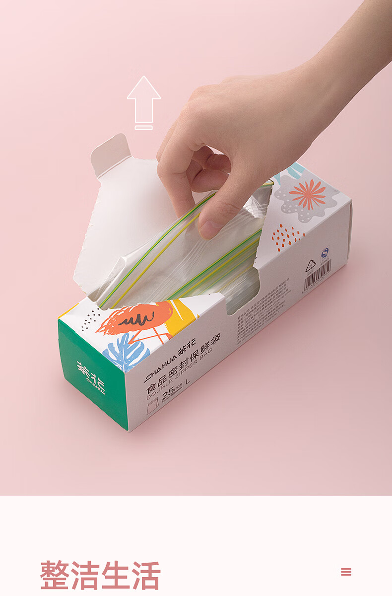 茶花 990091生物系列食物密封保鲜袋特大号立体款15只*2