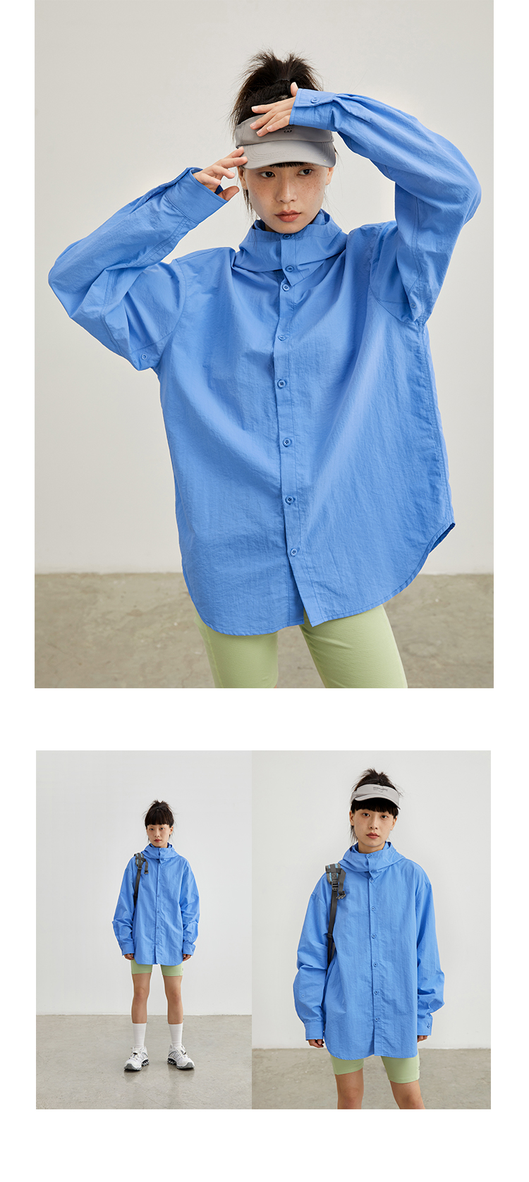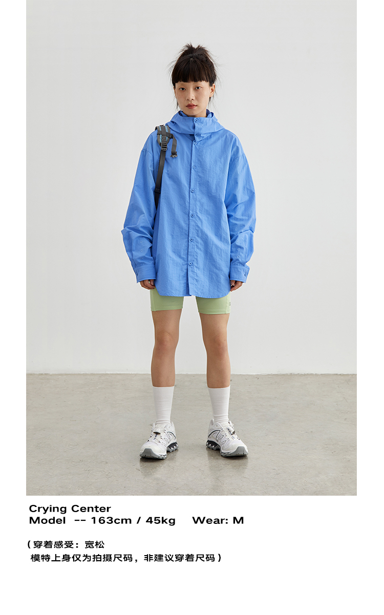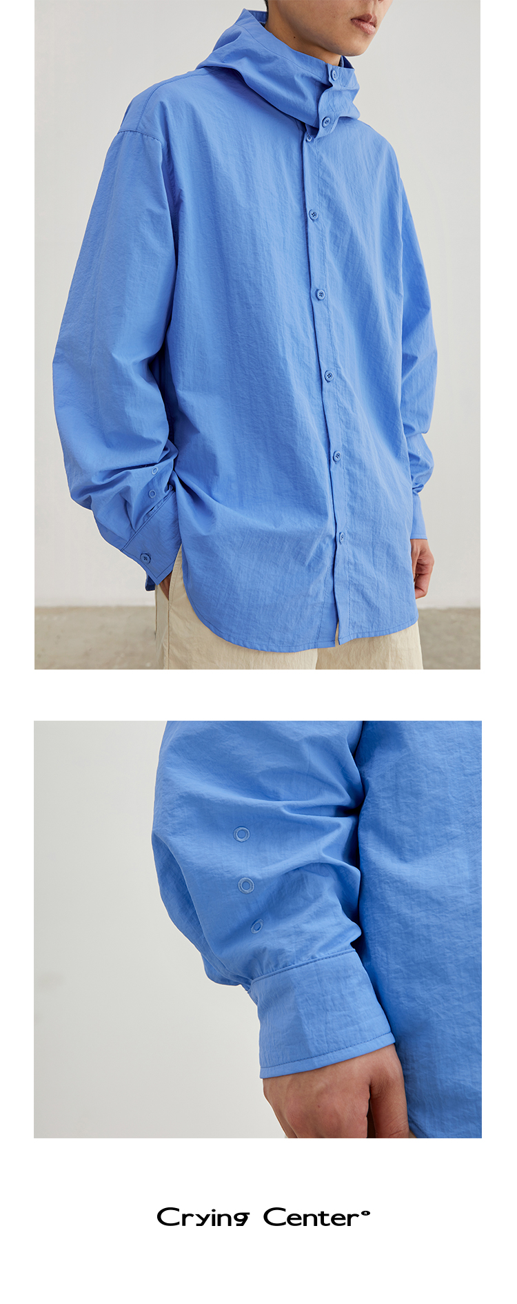 CryingCenter 亮彩蓝高领宽松版连帽防晒衬衫 哭喊中心