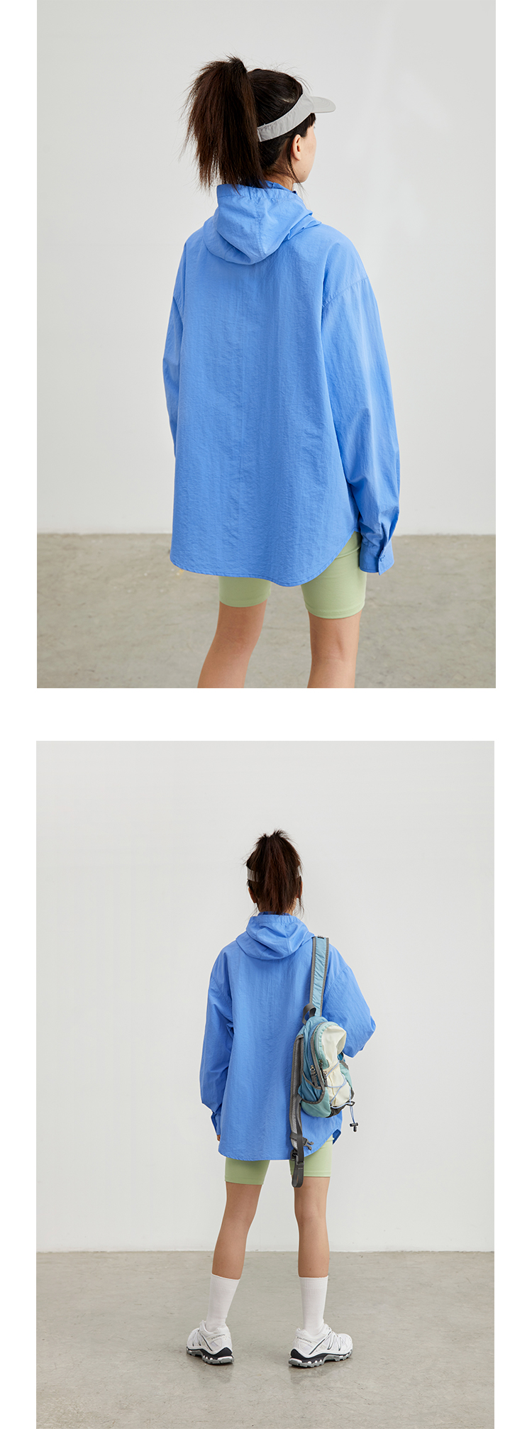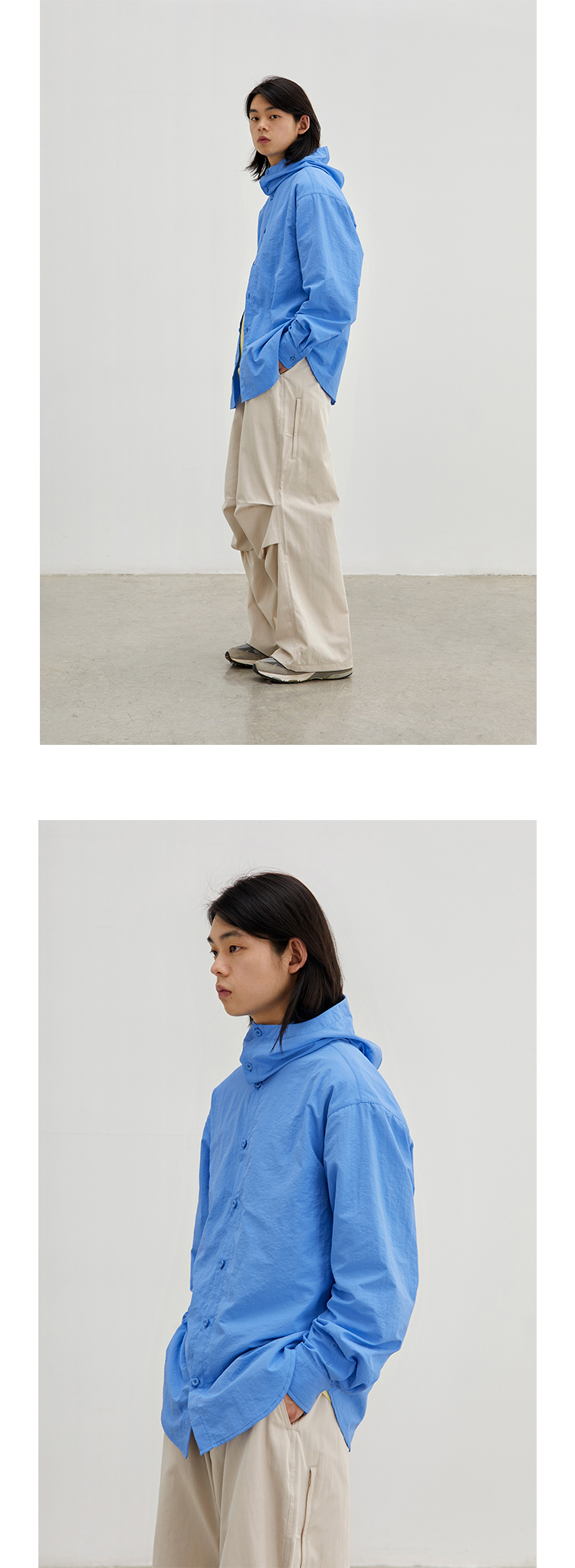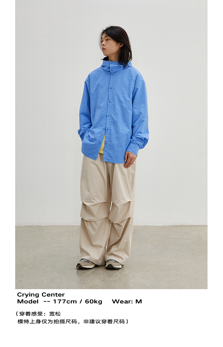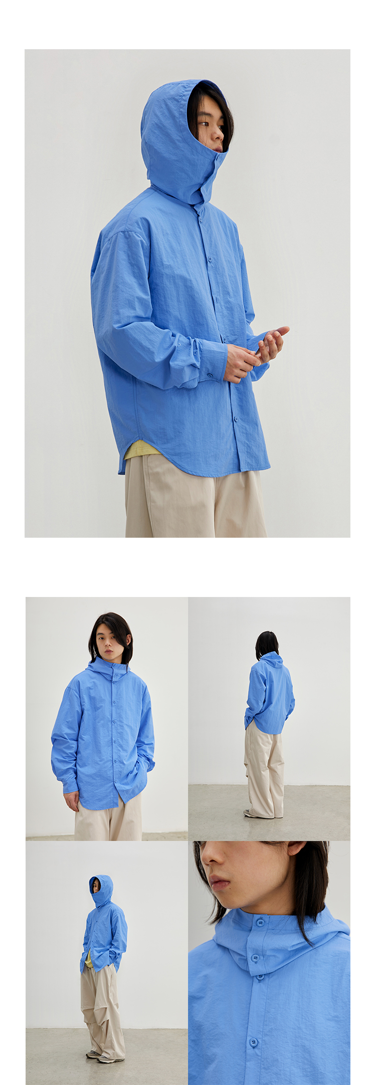 CryingCenter 亮彩蓝高领宽松版连帽防晒衬衫 哭喊中心