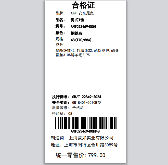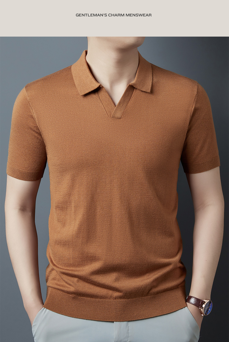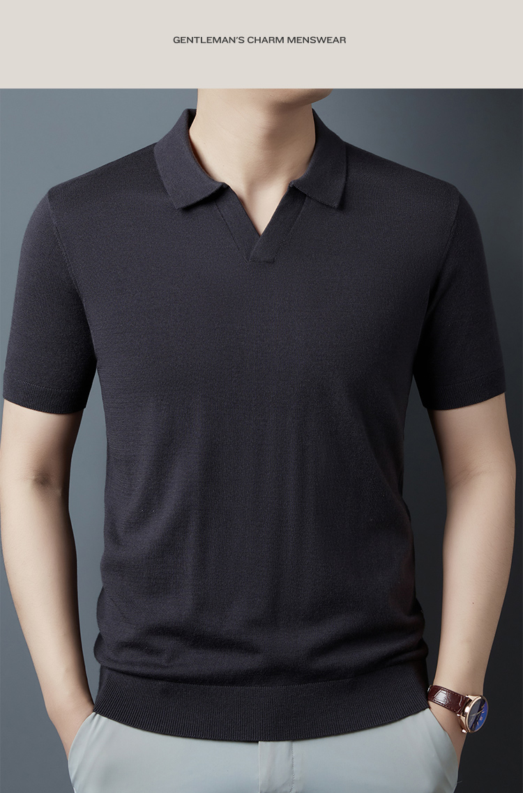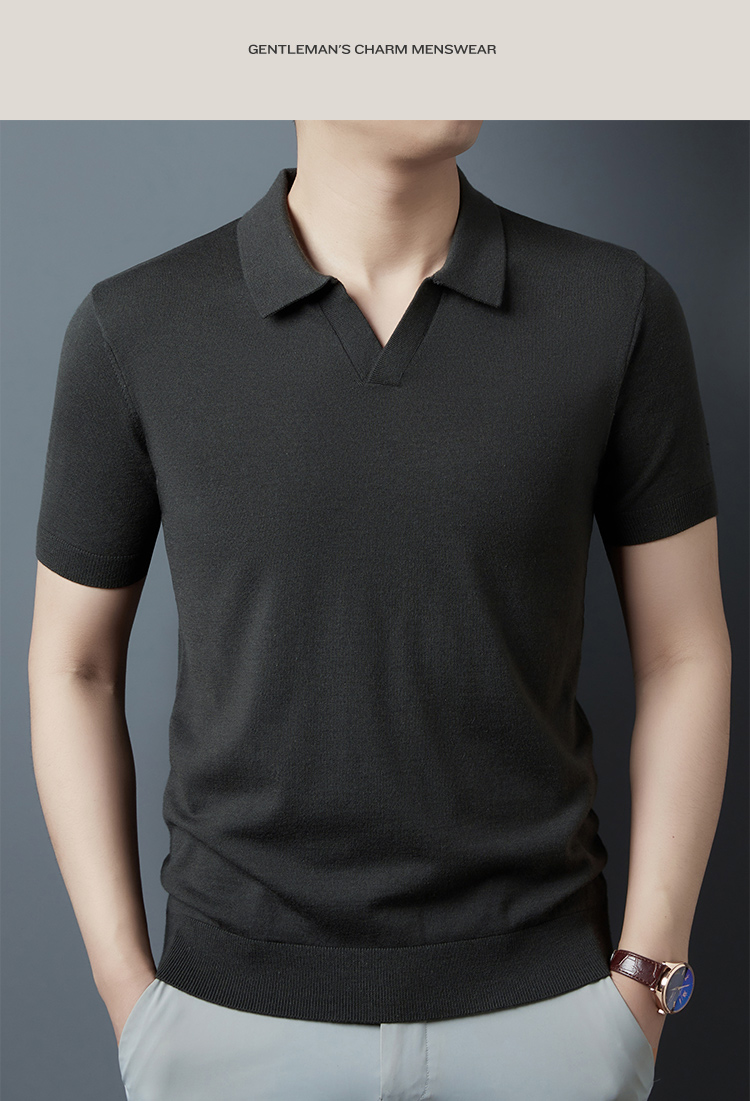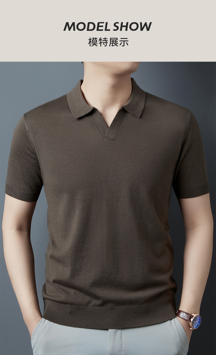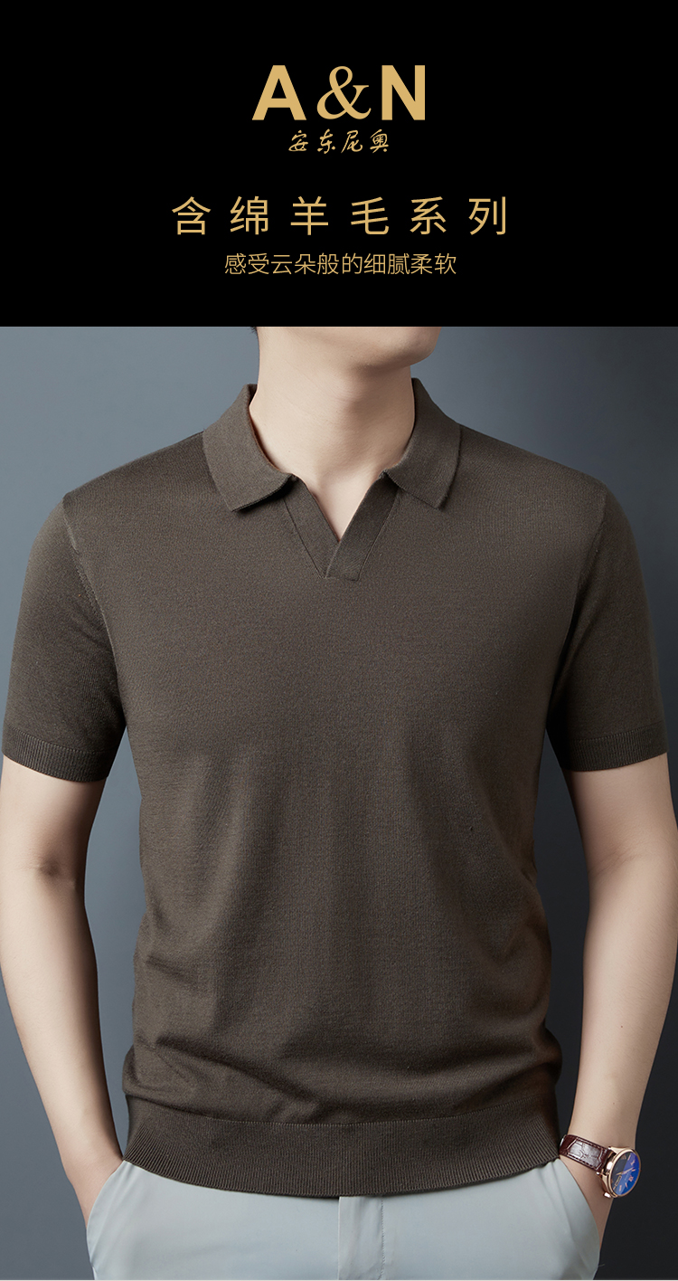 安东尼奥A&N 可机洗【含精纺羊毛&桑蚕丝】时尚轻奢针织短袖T恤男士休闲打底衫6300727