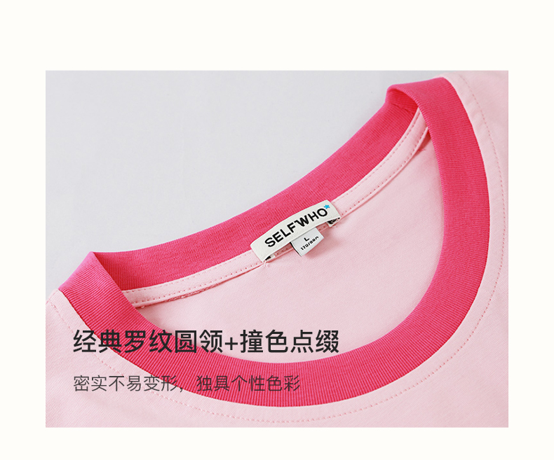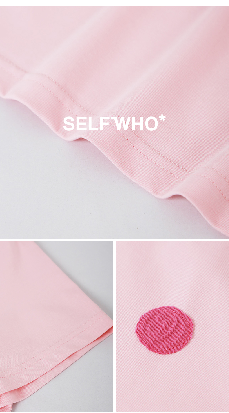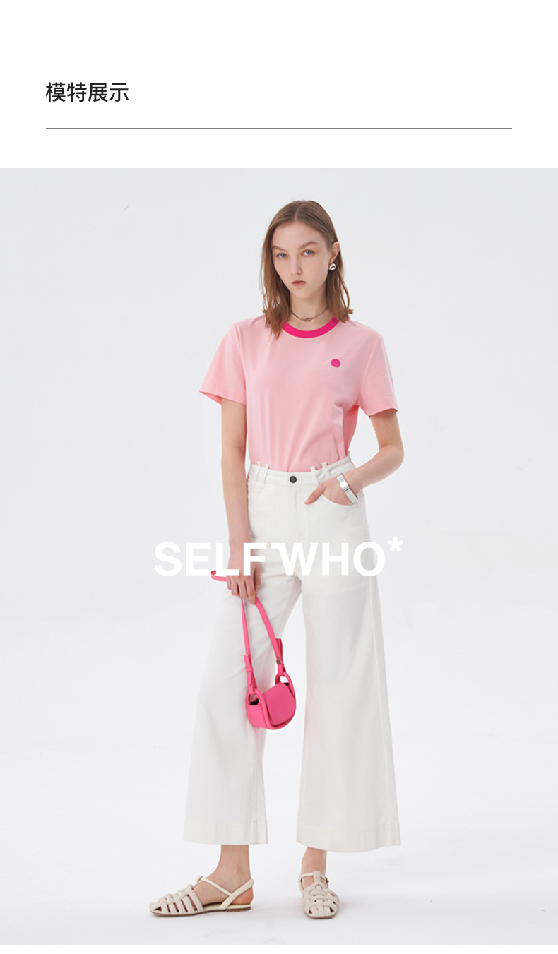 SELFWHO索罗娜凉感粉色T恤女夏季新款圆领正肩显瘦设计感短袖上衣