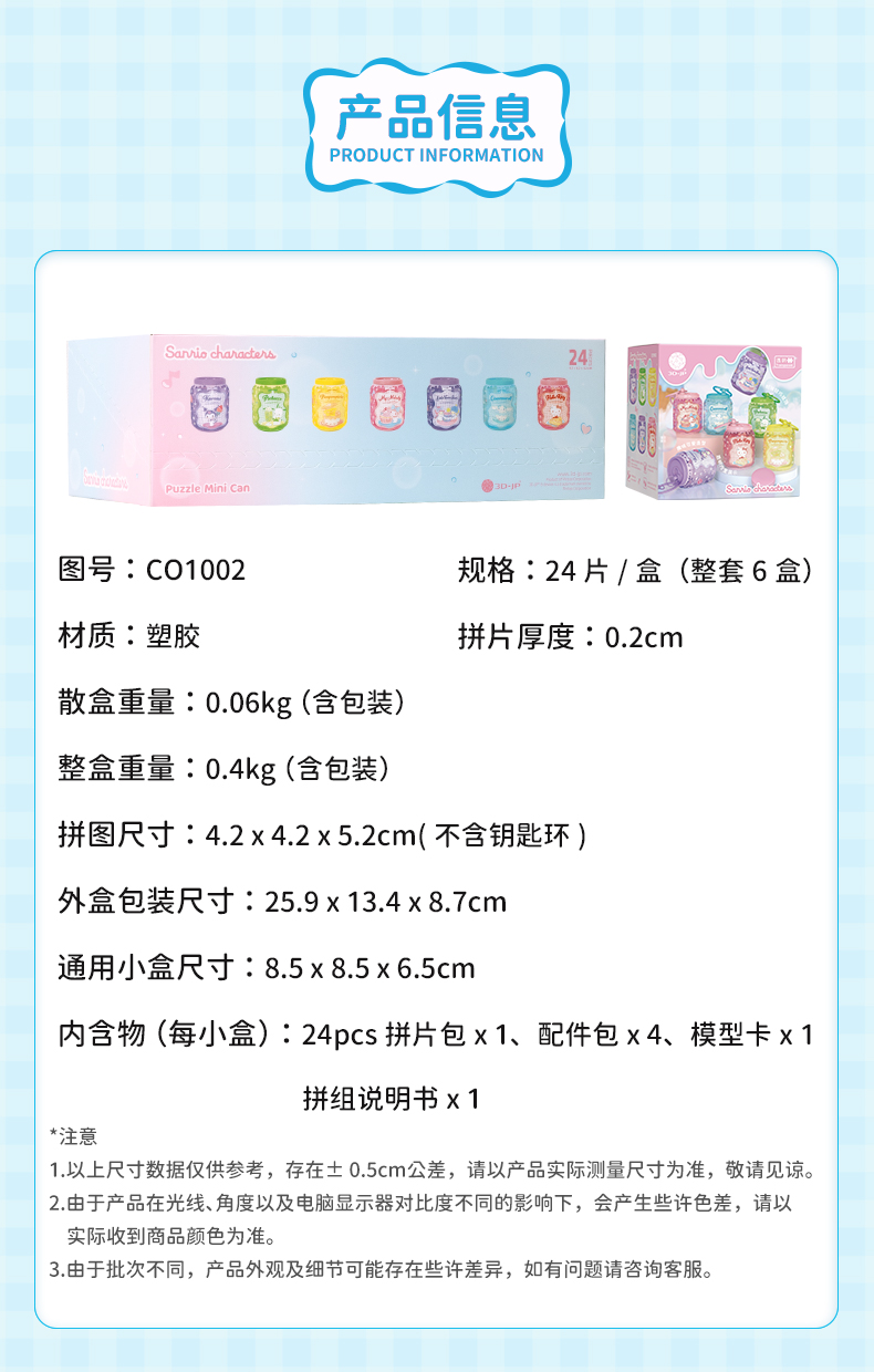 24片 易开罐盲盒拼图 CO1002 果酱小罐系列-三丽鸥家族