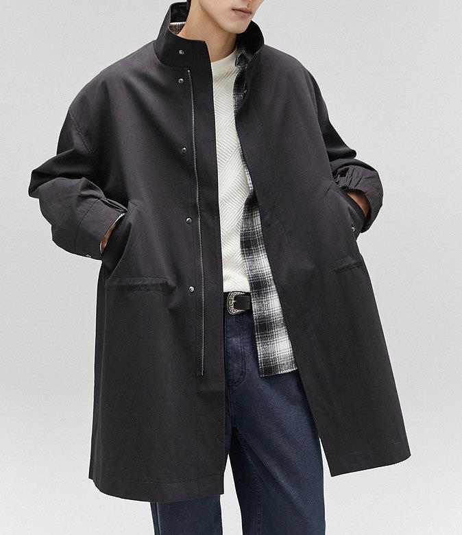 预售秋季新品 2025秋季设计感立领中长款风衣男士薄款派克服韩版宽松外套