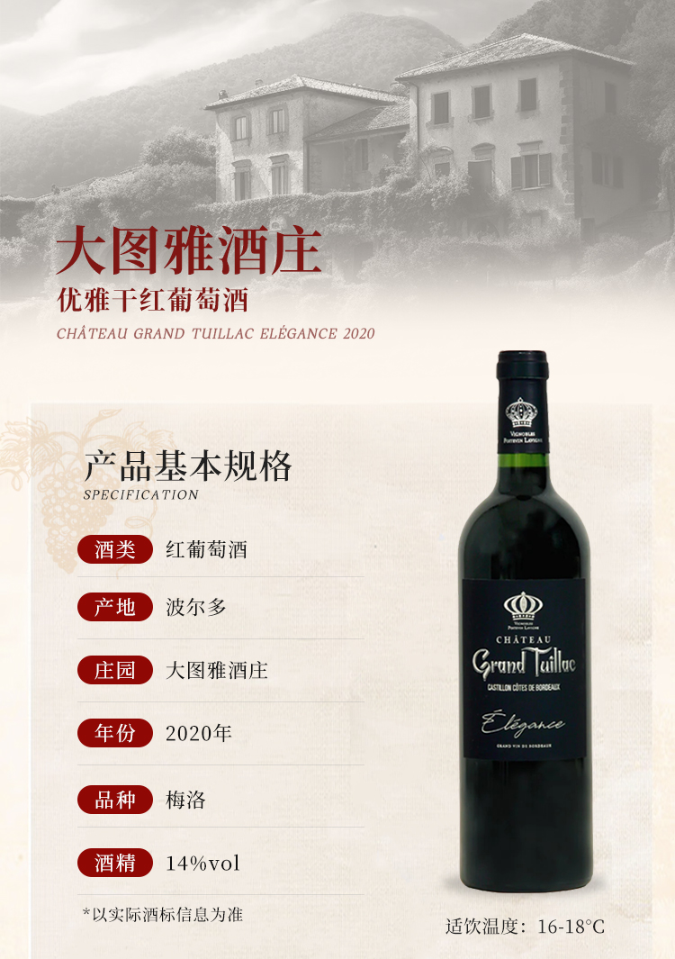 2020 Château Grand Tuillac Elégance, Bordeaux, France 大图雅酒庄优雅干红葡萄酒