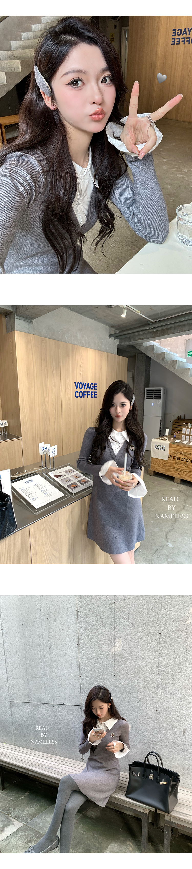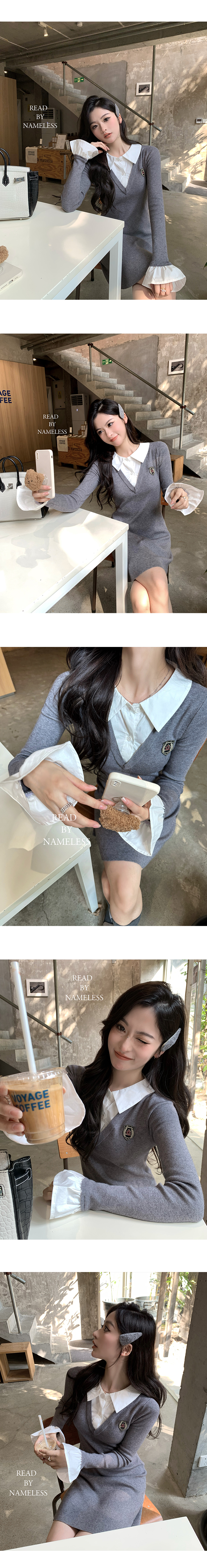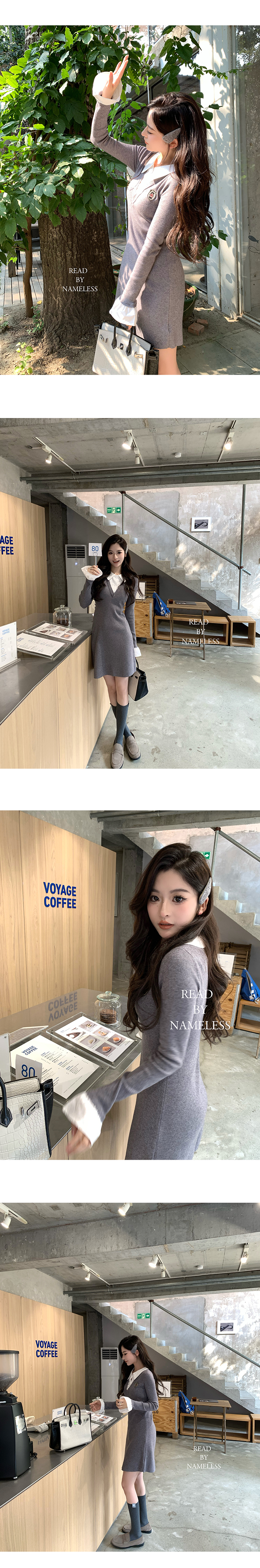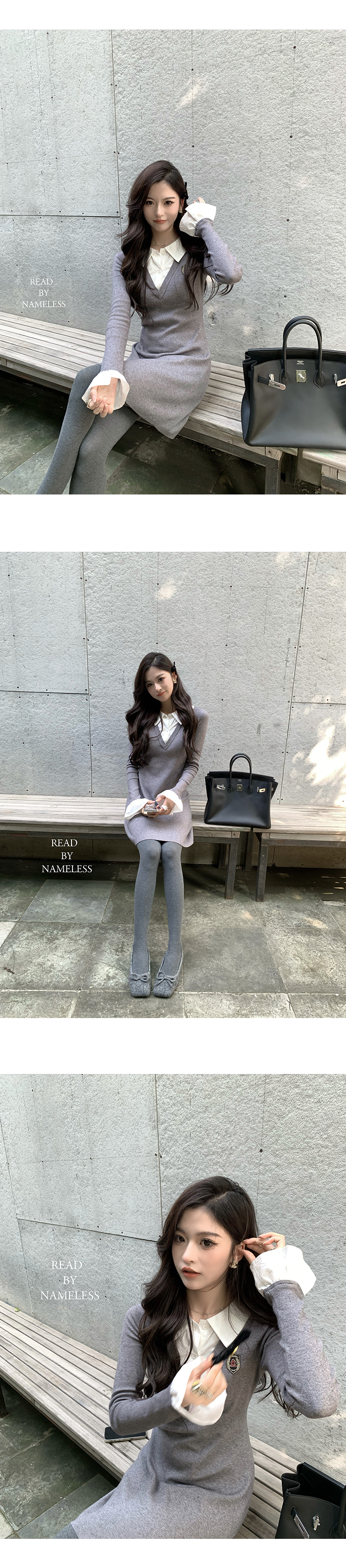 Read Nameless /灰色学院风拼接衬衫针织裙 2024/10/7