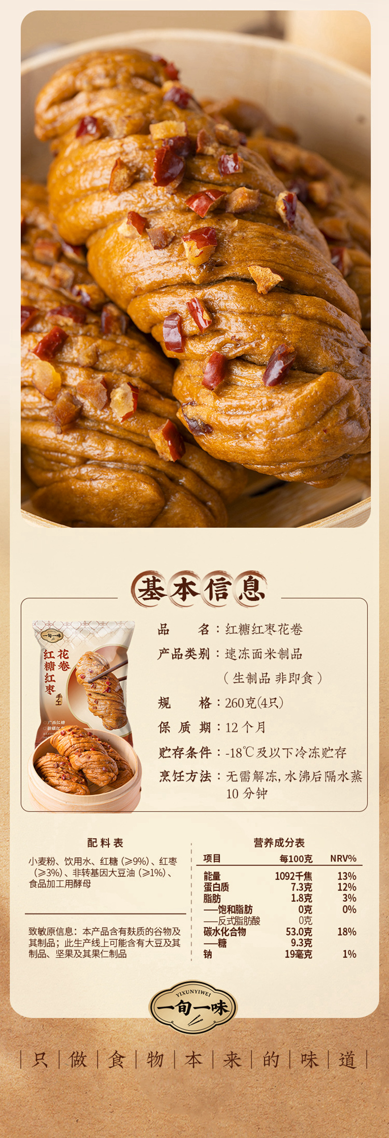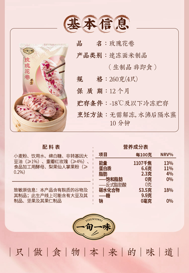 【女神节】一旬一味 玫瑰红糖红枣花卷 260g*4