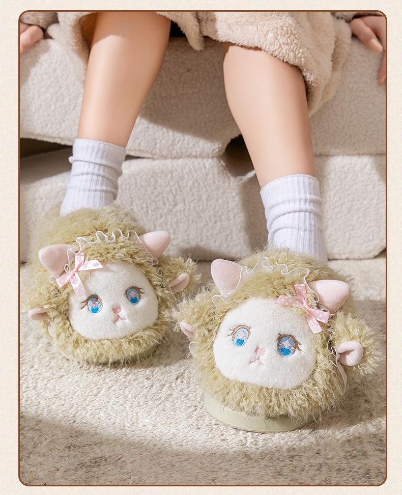 小怪兽毛毛棉拖女2025秋冬新款可爱卡通学生厚底保暖包头家居拖鞋