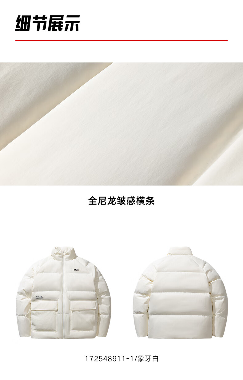 安踏SKATE短款羽绒服街头时尚宽松百搭男女同款加厚立领外套172548911