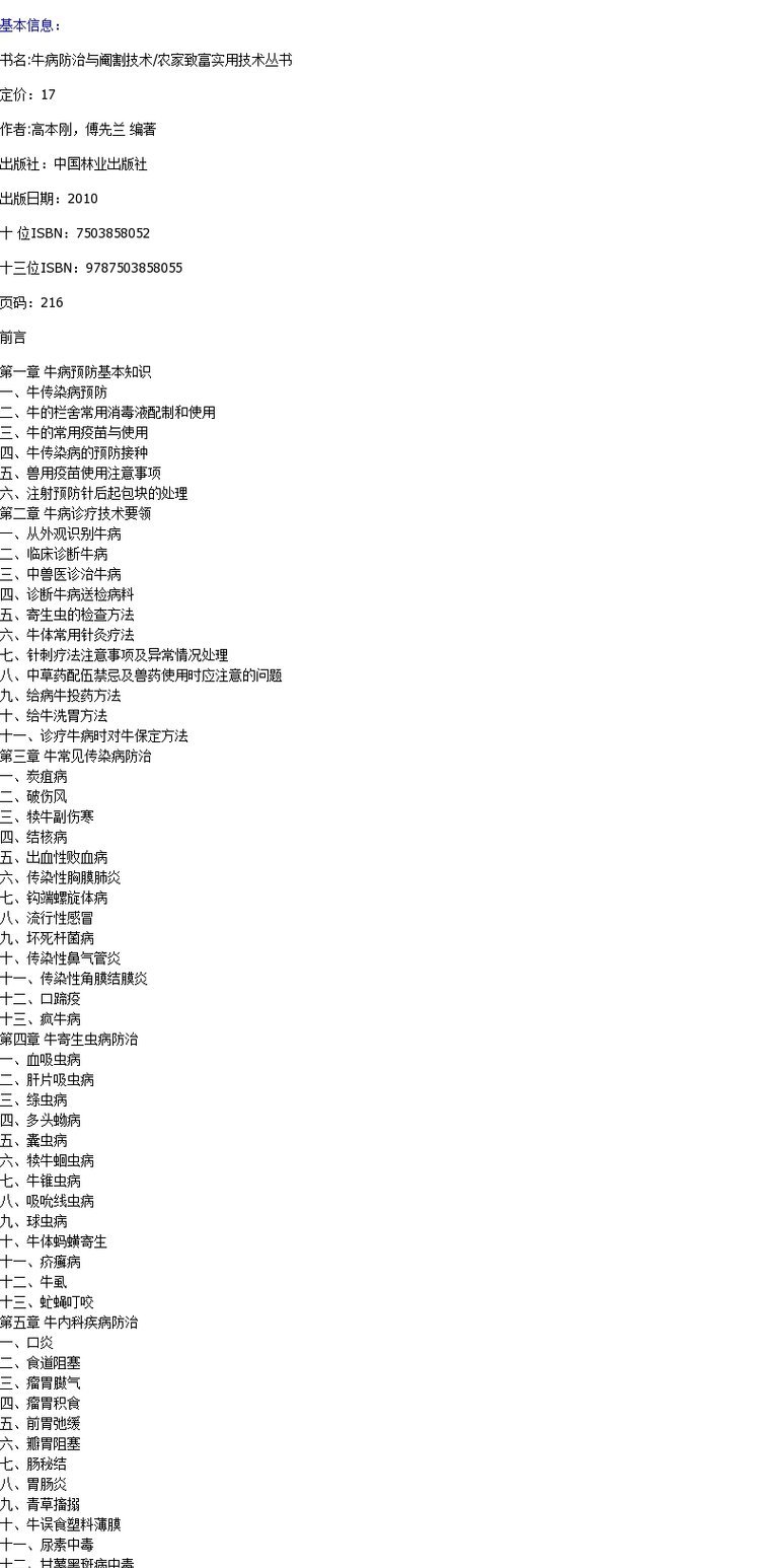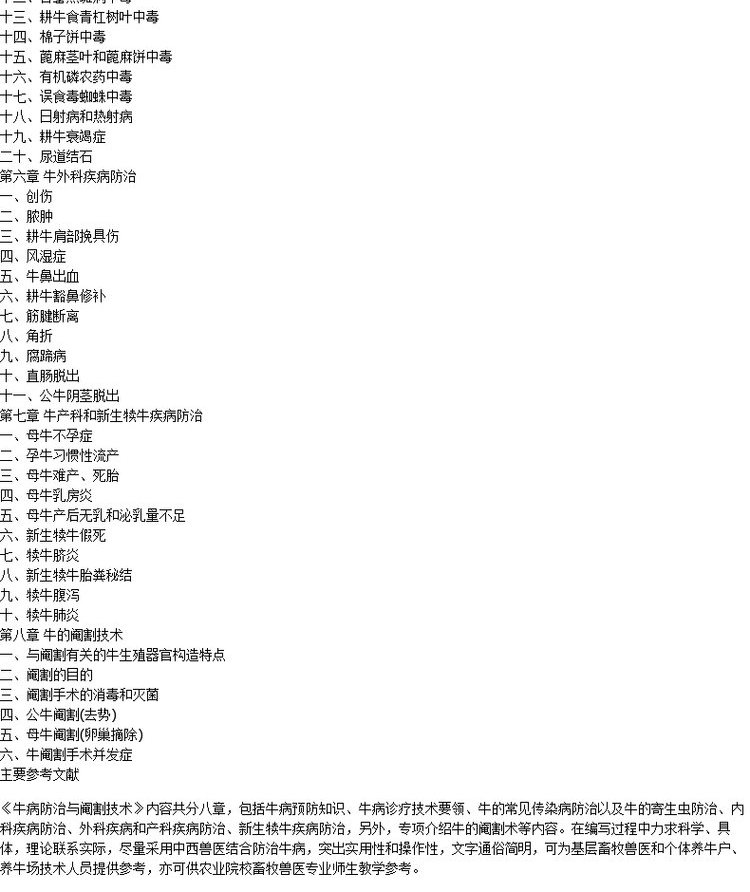 牛病防治与阉割技术 5805 农家致富实用技术丛书 诊疗技术要领 见传染病 寄生虫 内科外科疾病 牛产科 新生犊牛疾病防治 基本知识