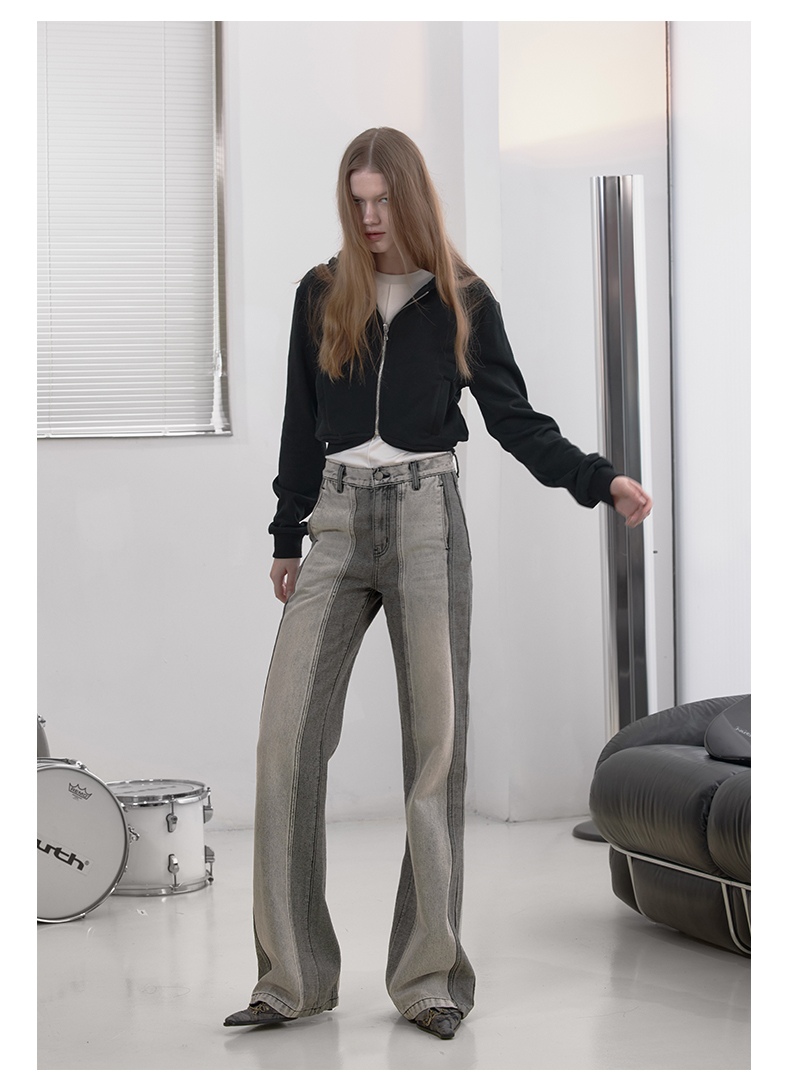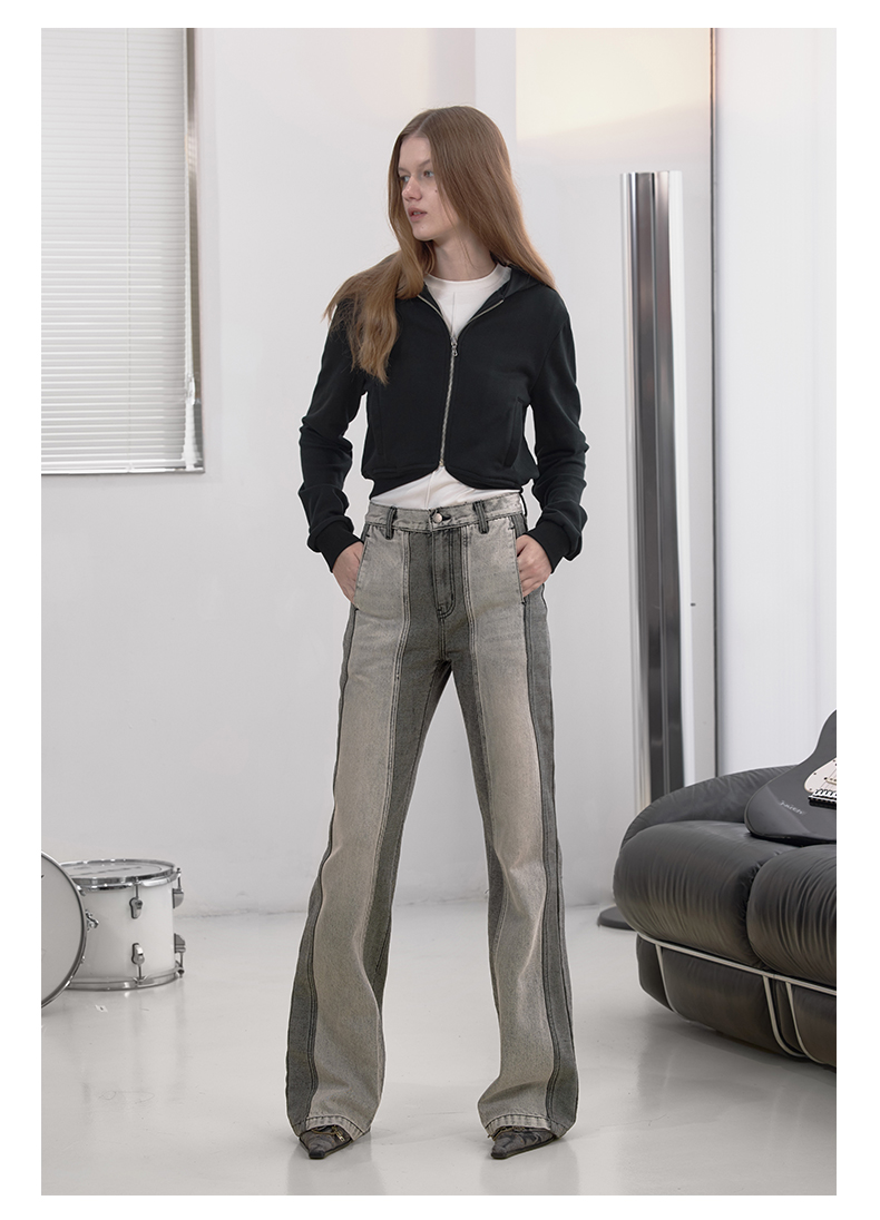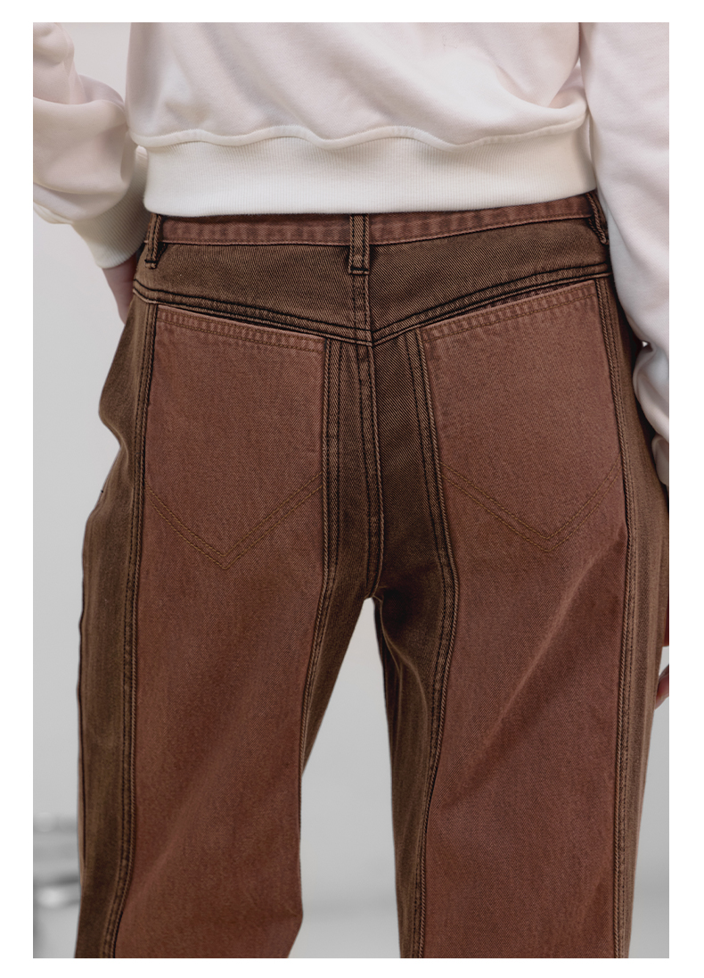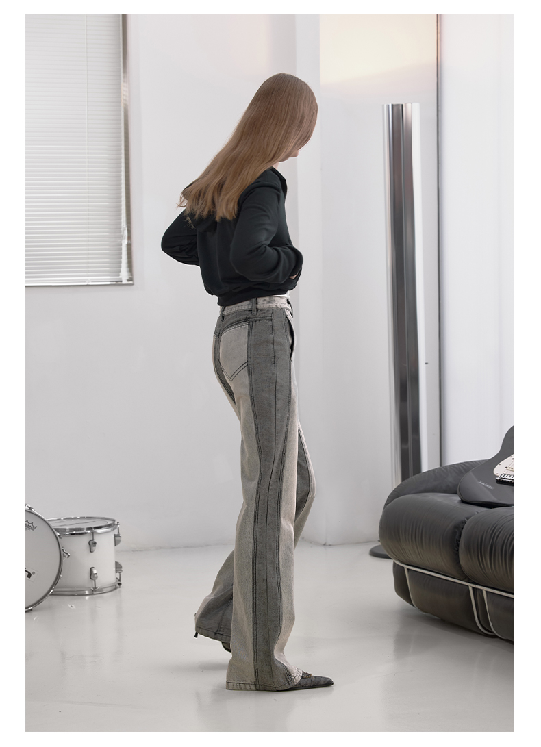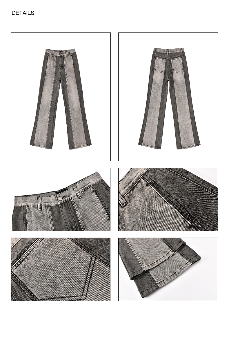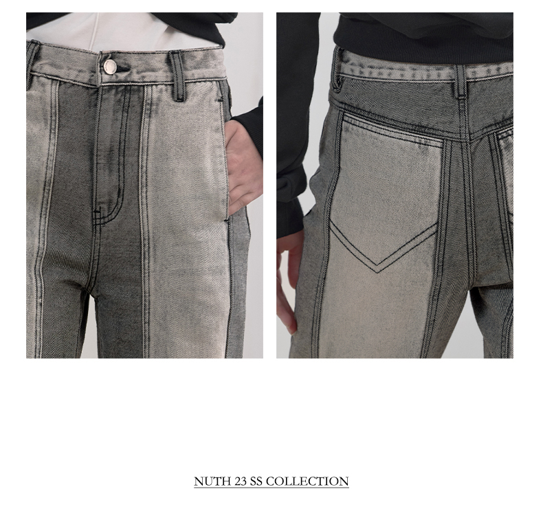 NUTH“谍照”|牛仔裤水洗做旧分割线拼色直筒微喇裤