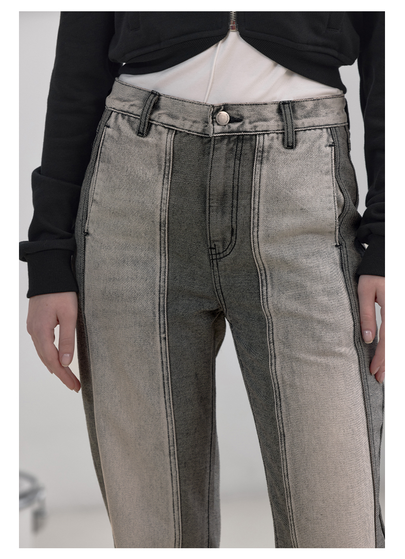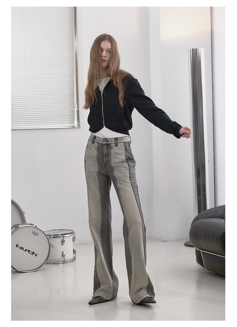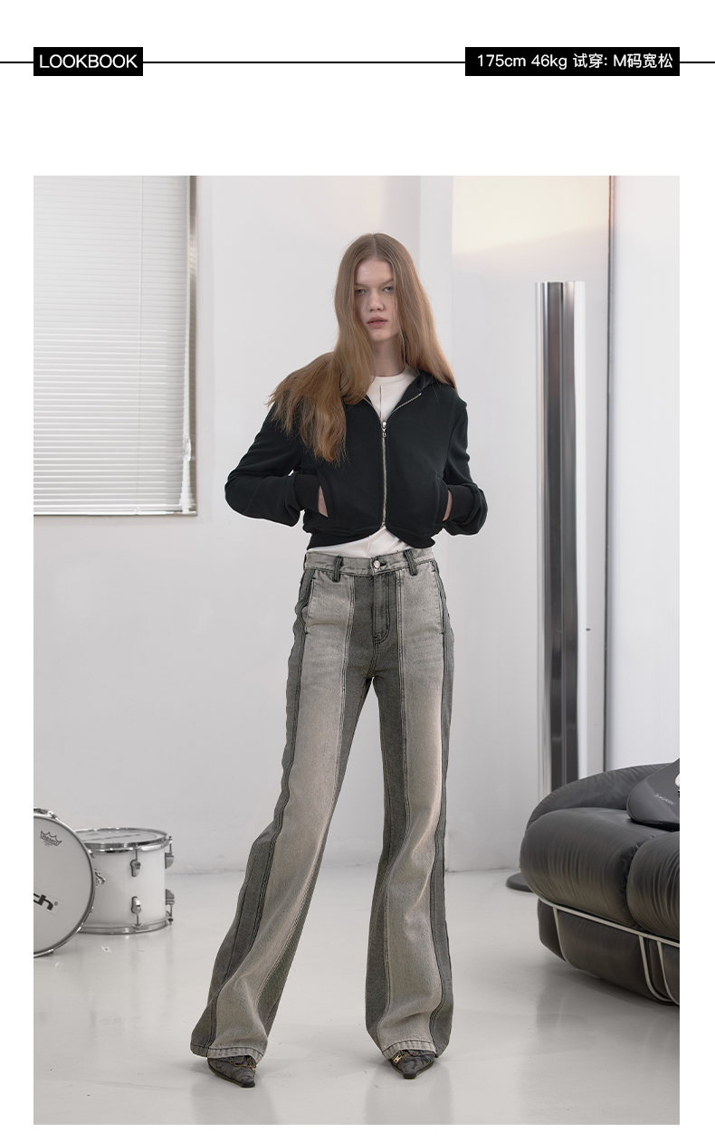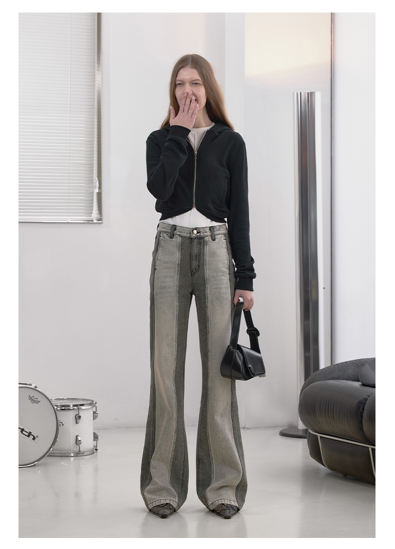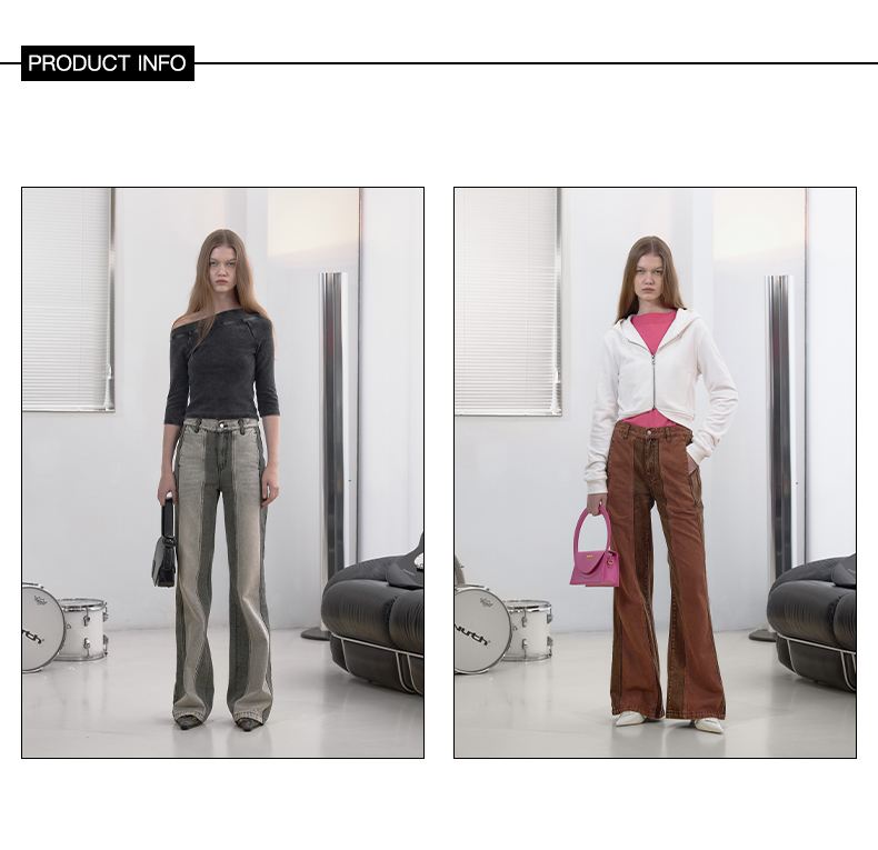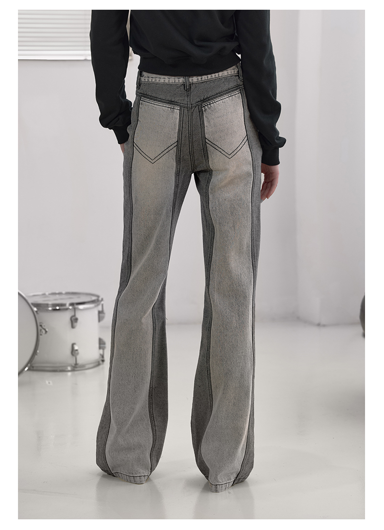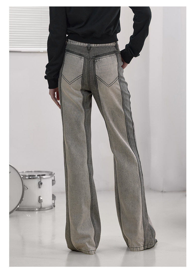 NUTH“谍照”|牛仔裤水洗做旧分割线拼色直筒微喇裤