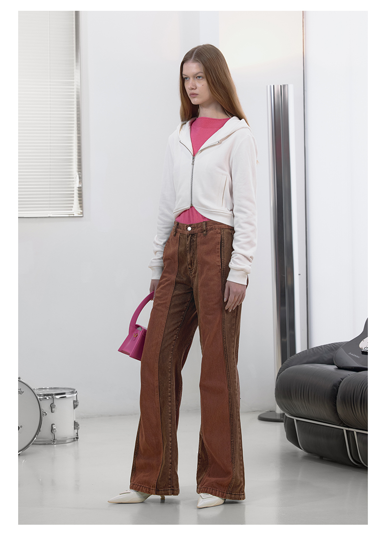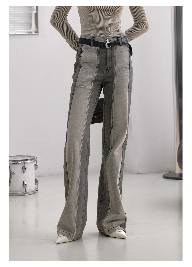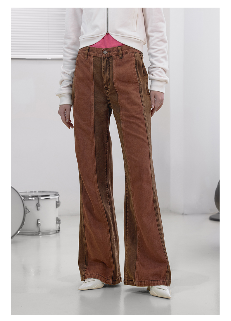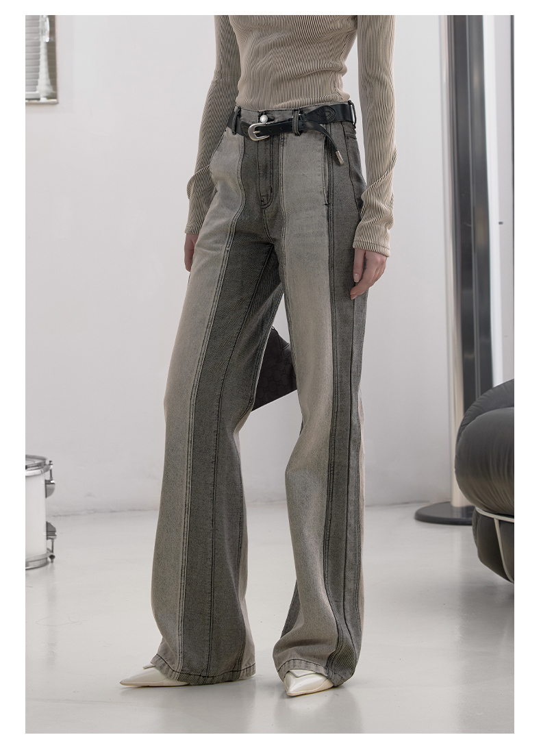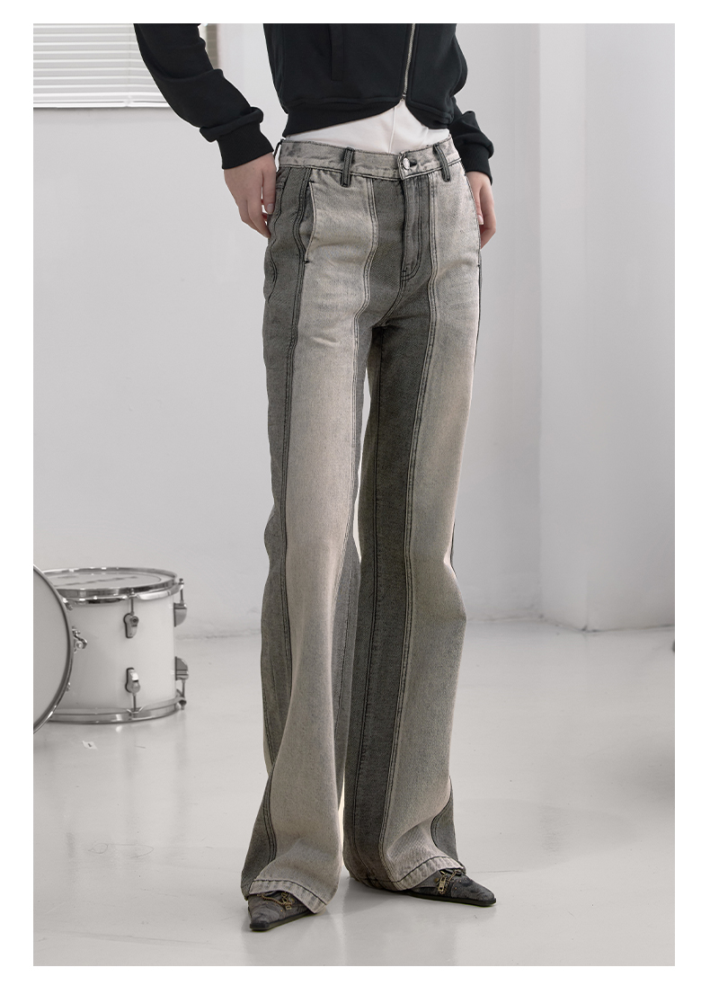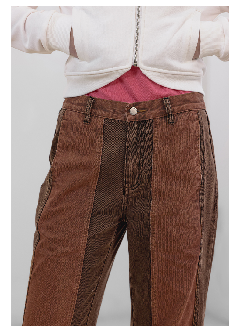 NUTH“谍照”|牛仔裤水洗做旧分割线拼色直筒微喇裤
