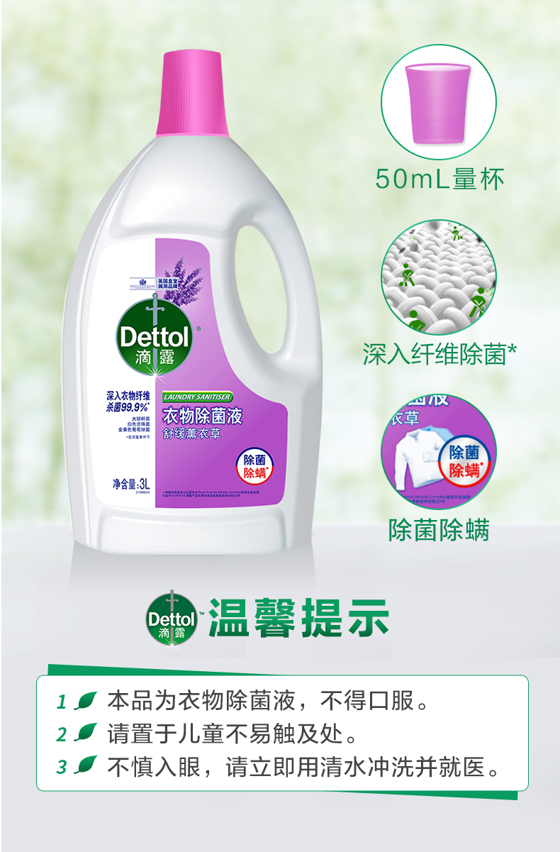 Dettol滴露薰衣草香衣物除菌液3升