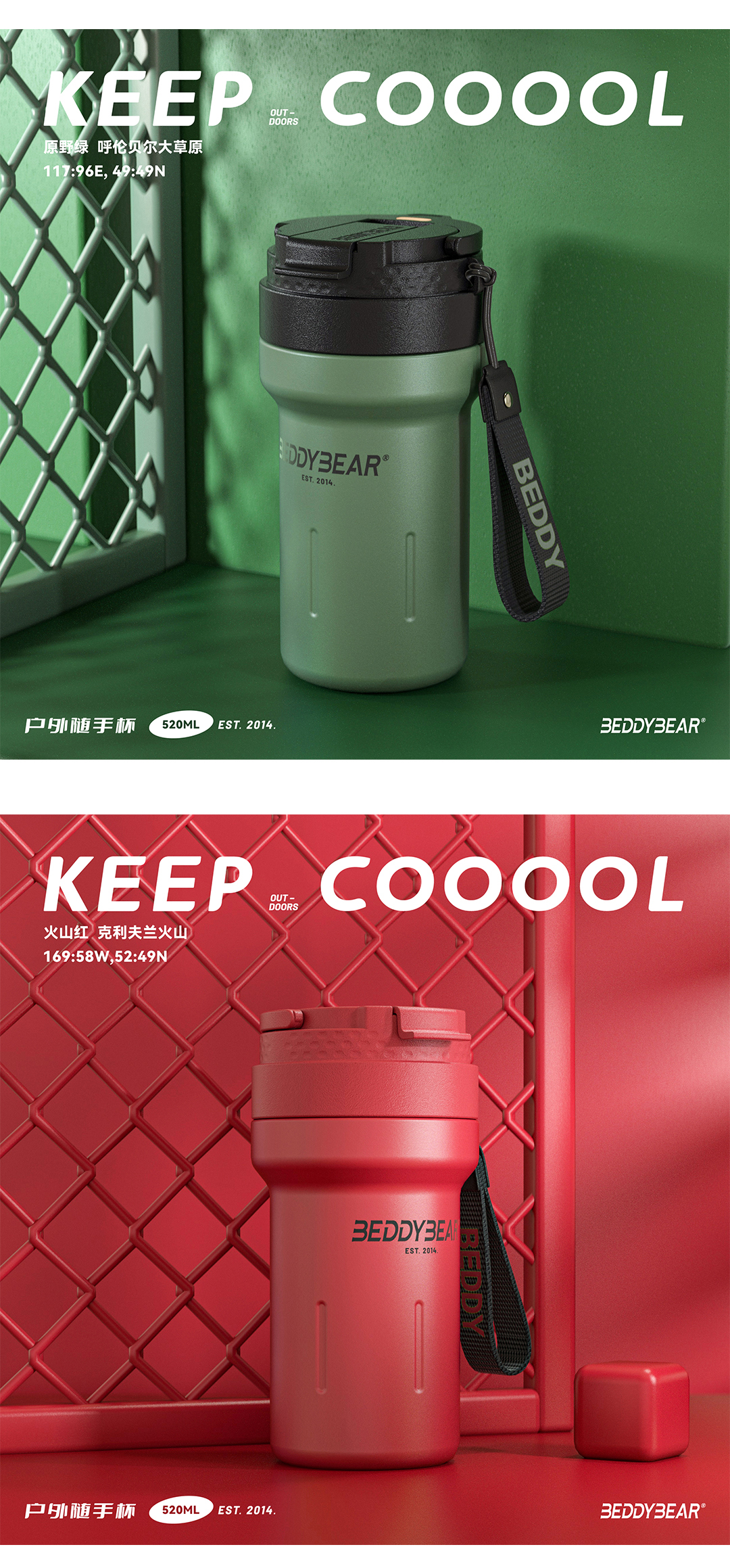 杯具熊户外随手杯吸嘴直饮两用保温杯咖啡杯520ML TT350-520