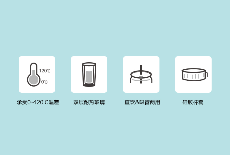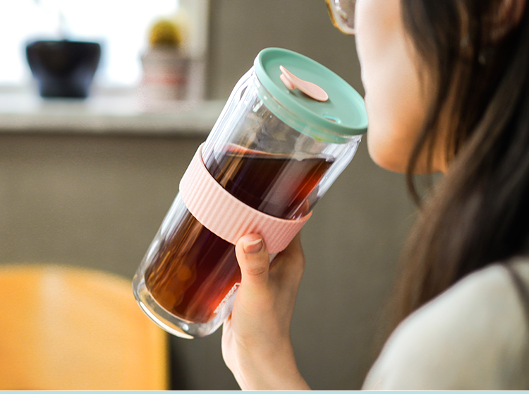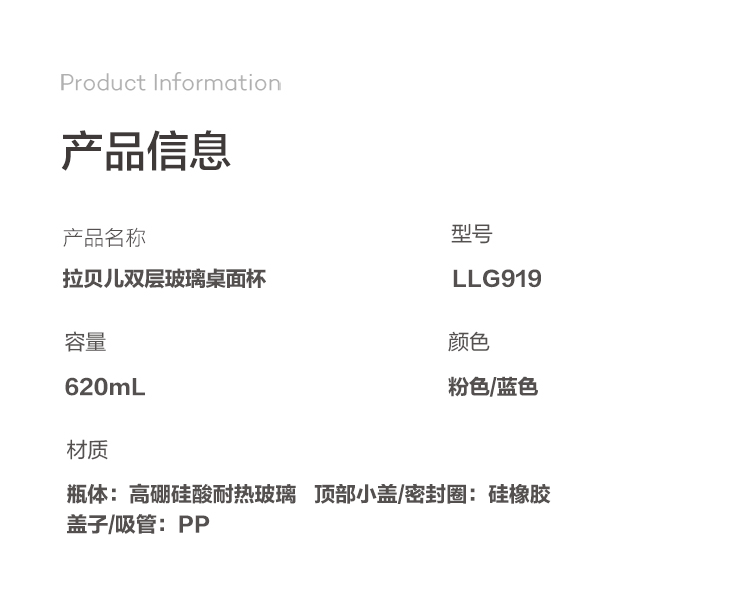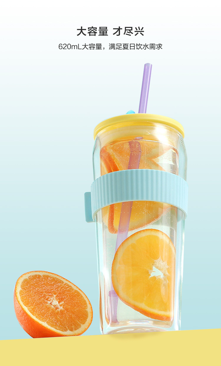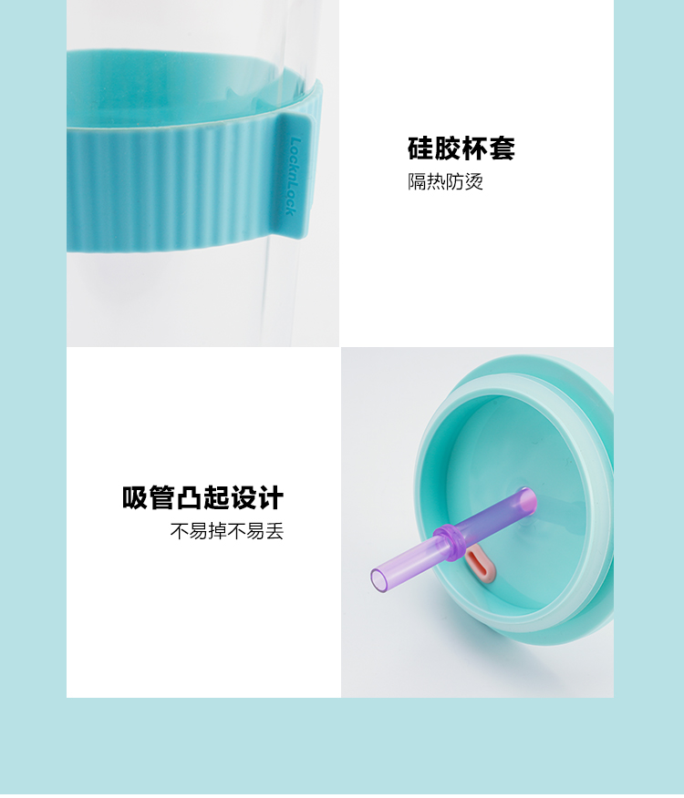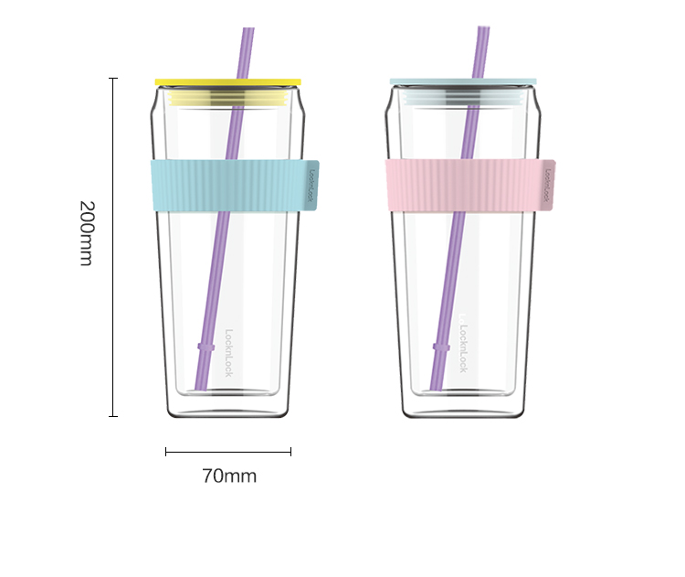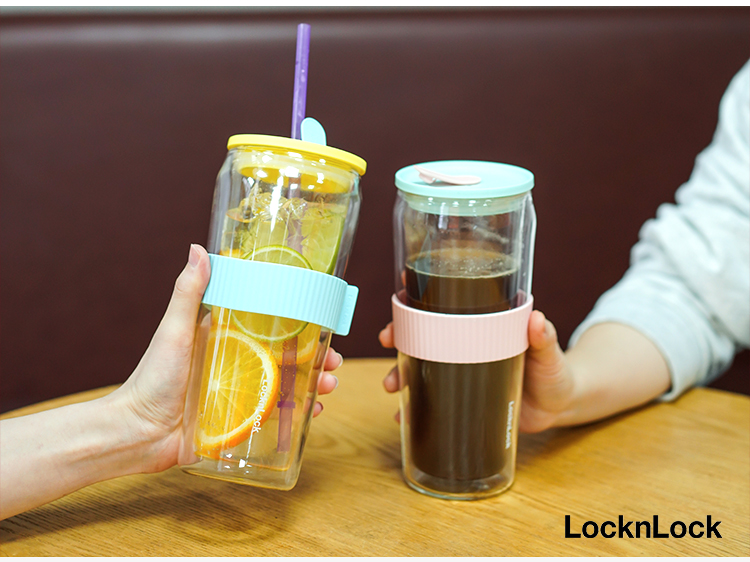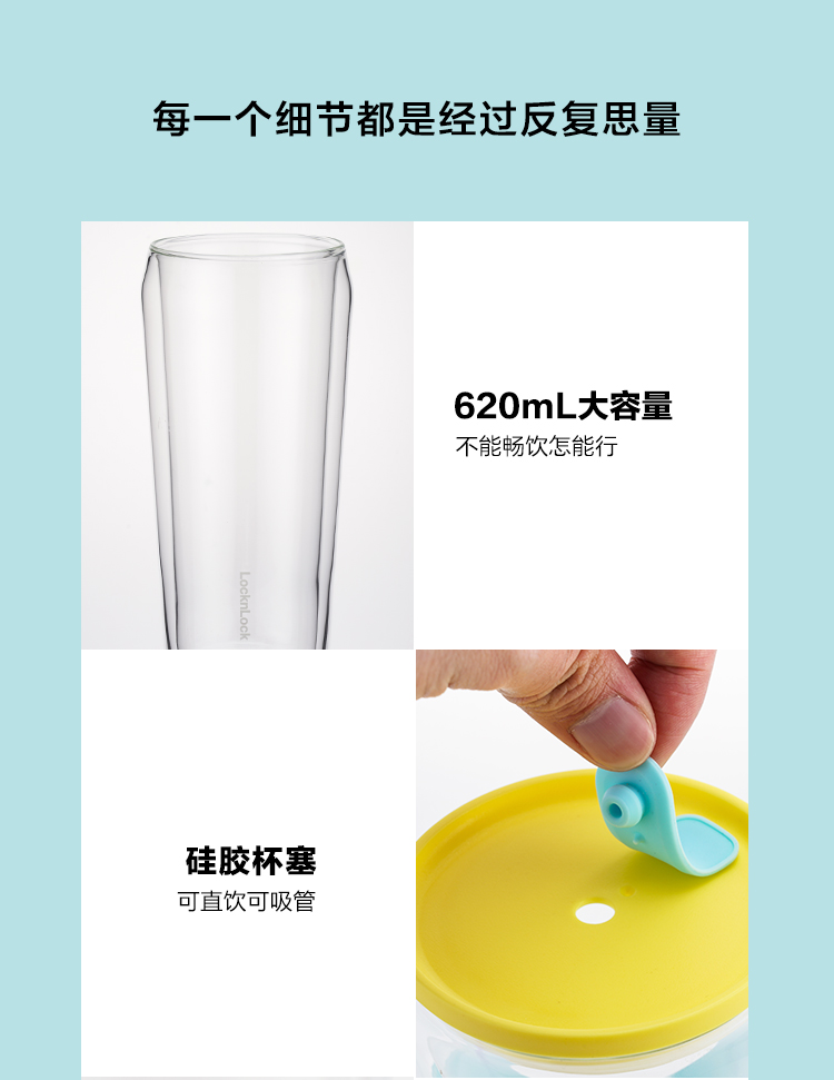 乐扣乐扣吸管杯ins风带吸管水杯女双层耐热玻璃杯大容量少女心 LLG919