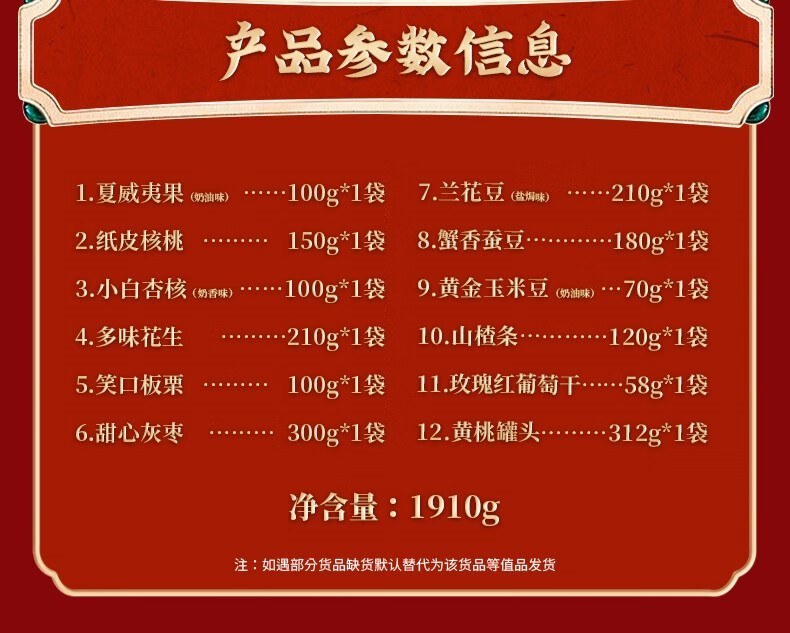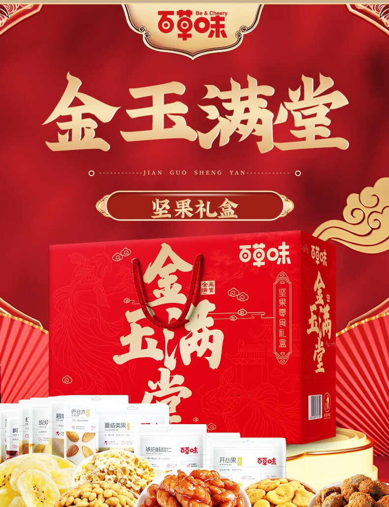 百草味 坚果礼盒 休闲零食年货大礼包 金玉满堂1910g
