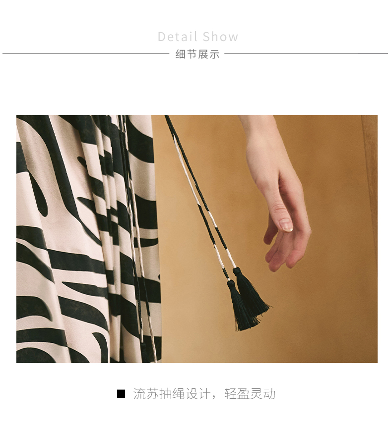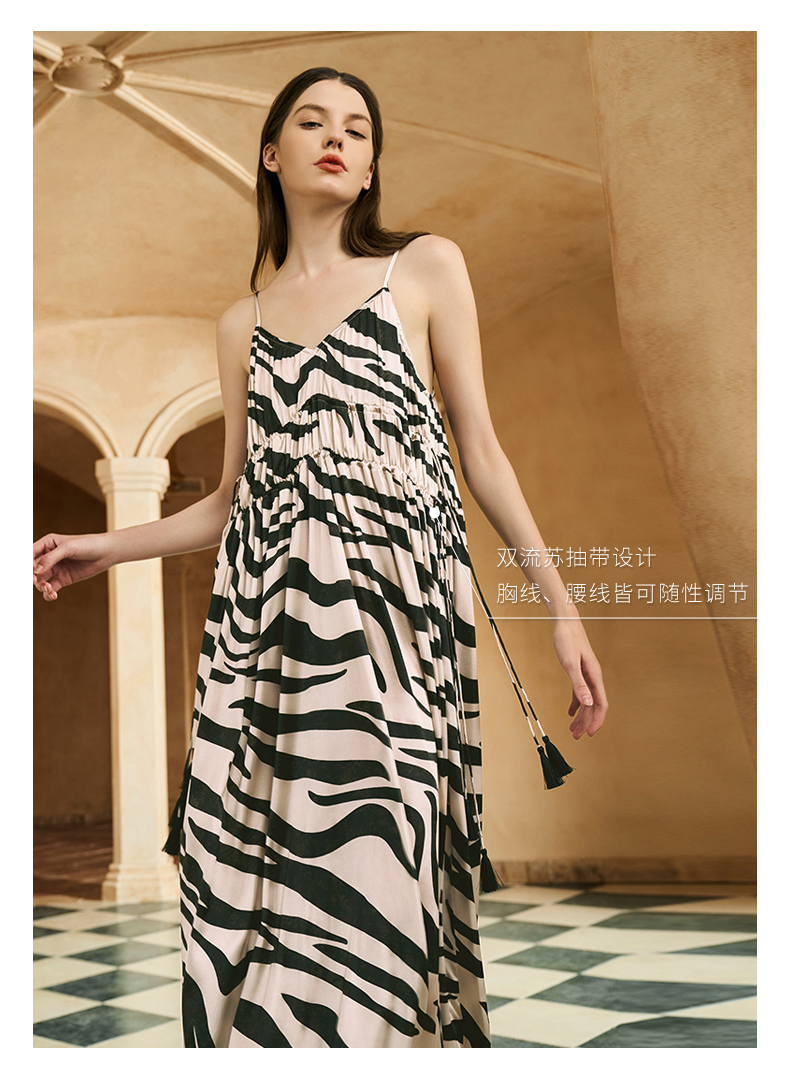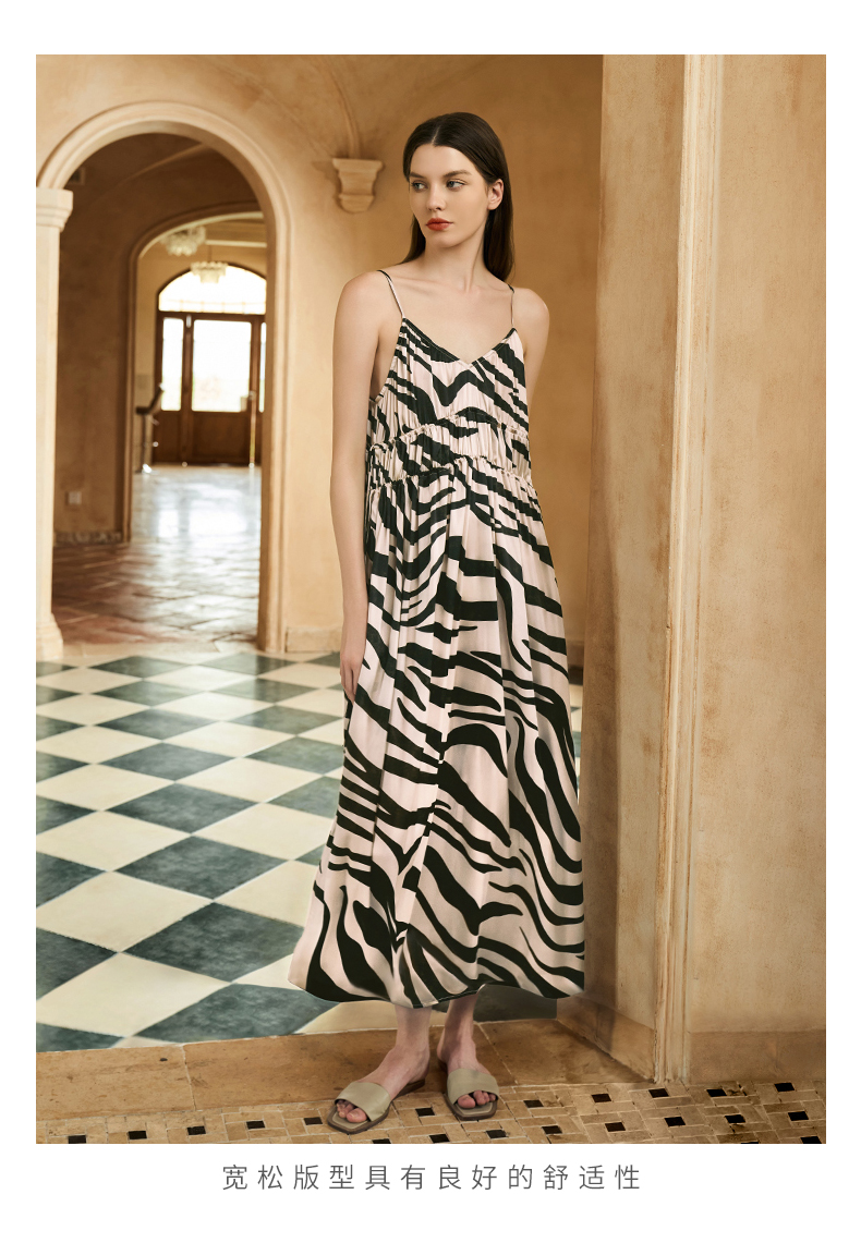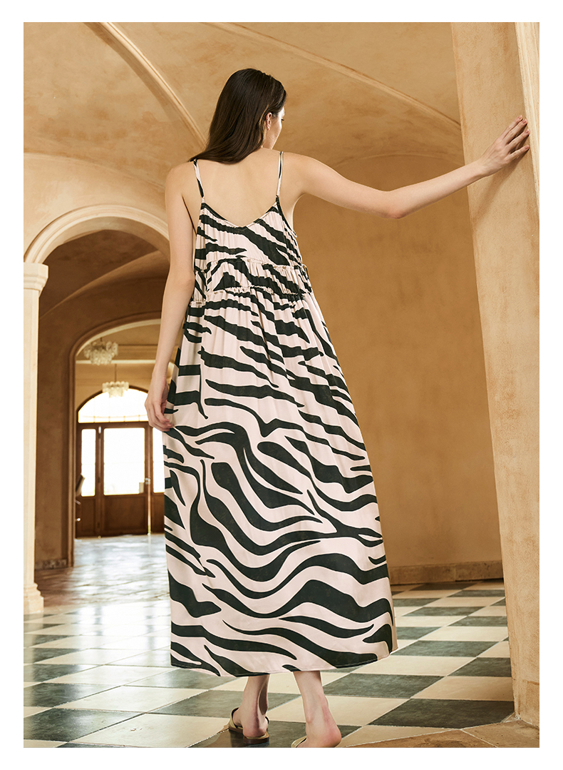Soloseta桑蚕丝吊带睡裙女丝绸斑马纹印花连衣长裙2025度假