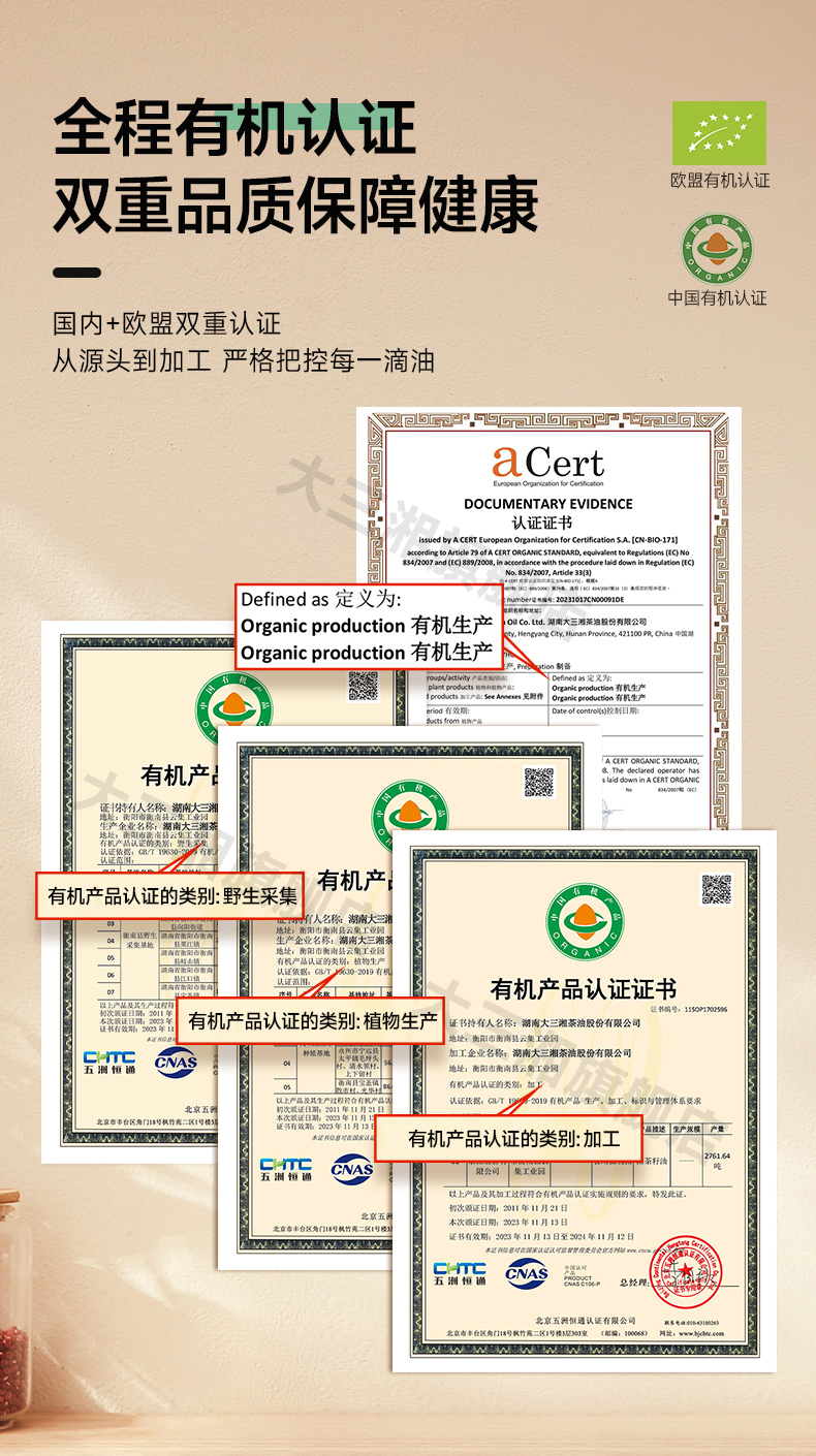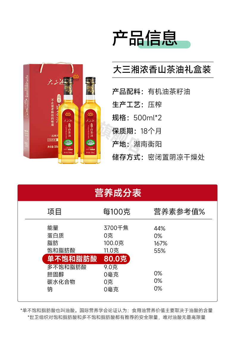 【2瓶】大三湘有机浓香山茶油500ml 配礼袋 A-2751