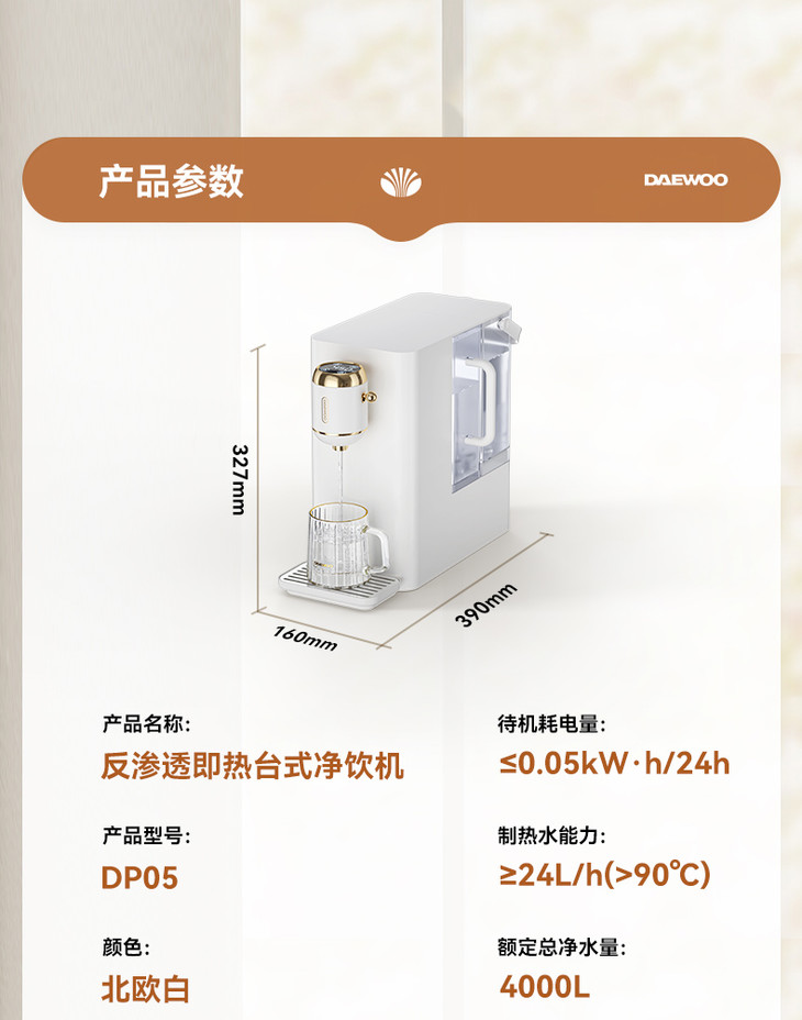 大宇台式净饮一体机即热饮水机家用净水器机自来水过滤 心选到家