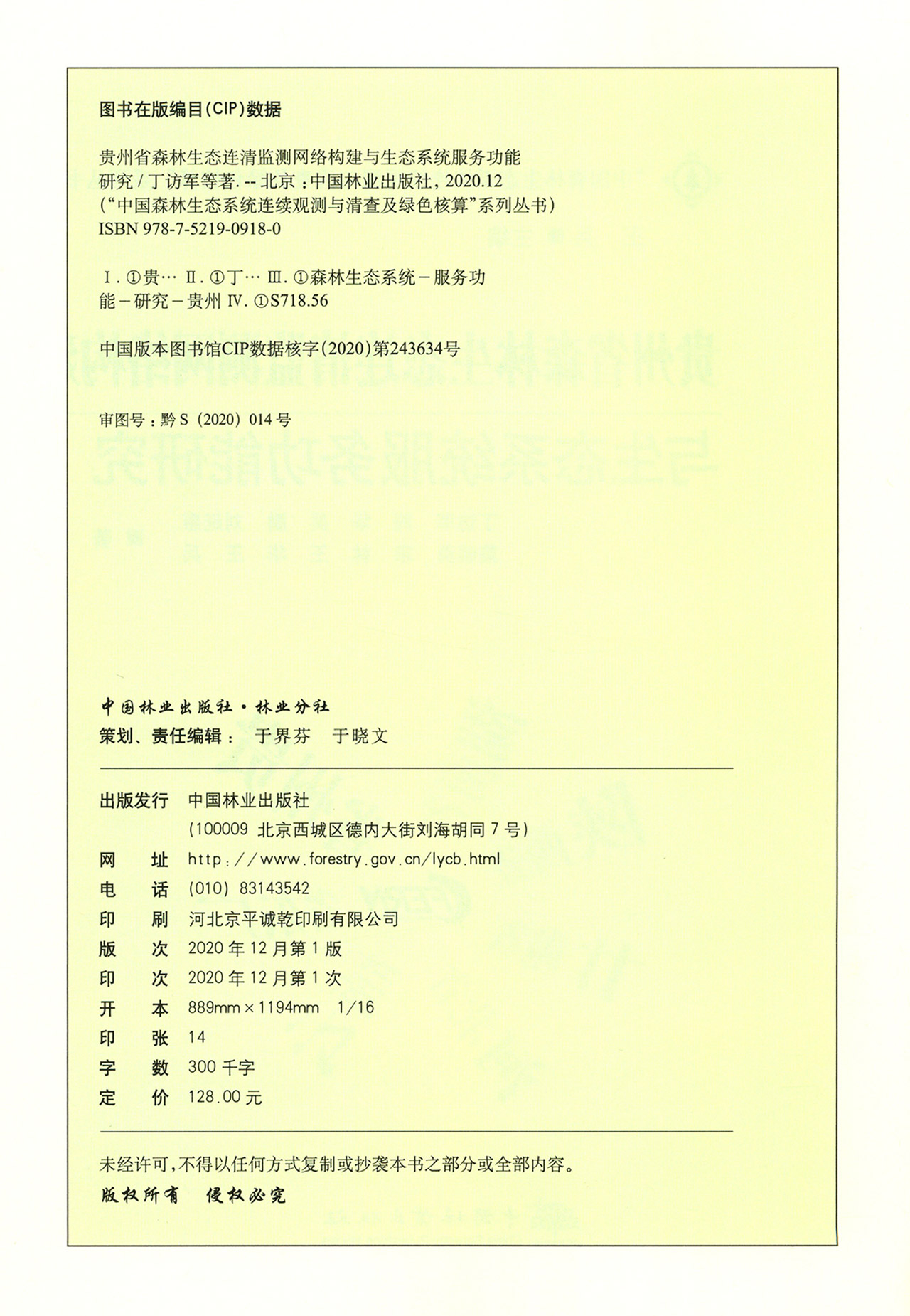 贵州省森林生态连清监测网络构建与生态系统服务功能研究 丁访军 0918 中国林业出版社