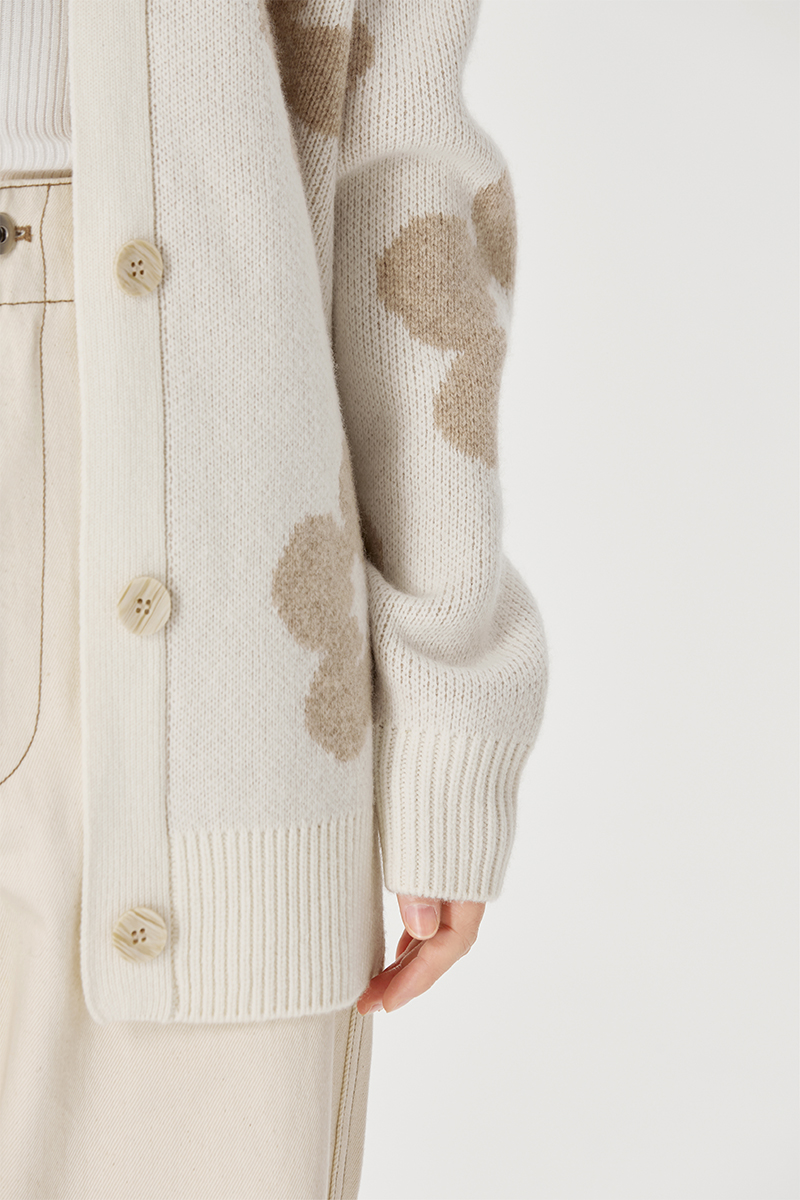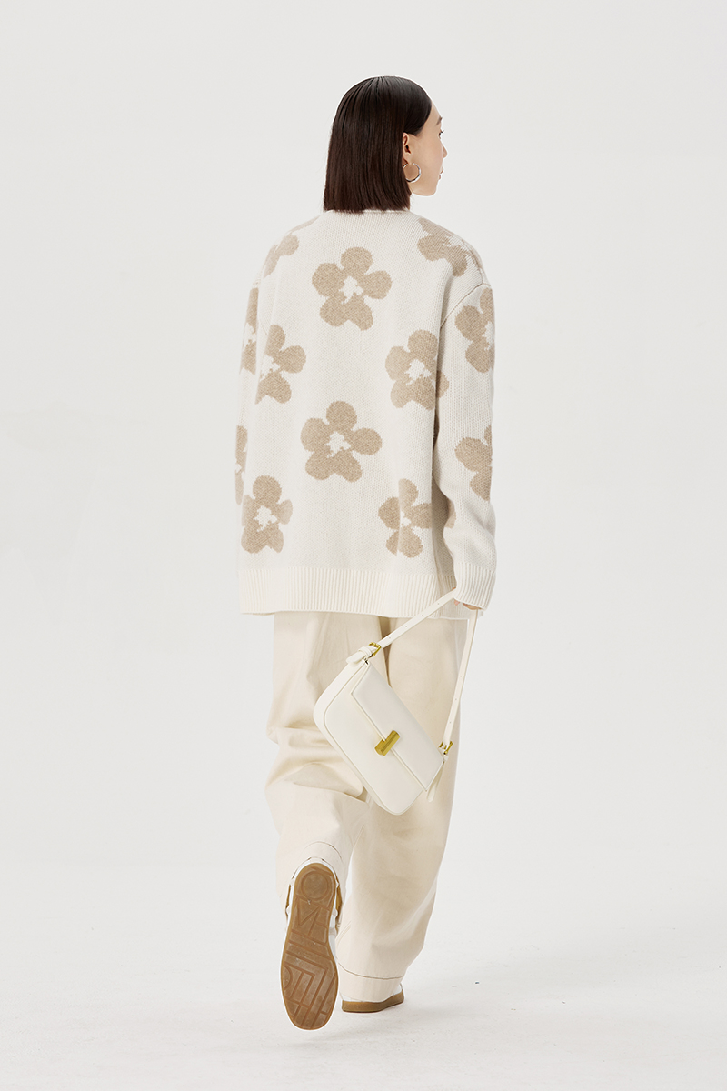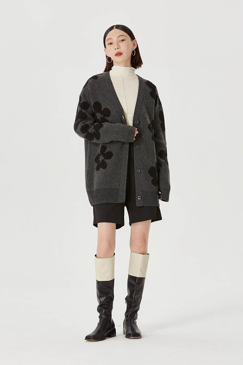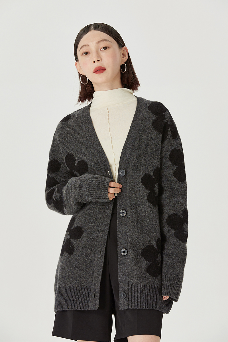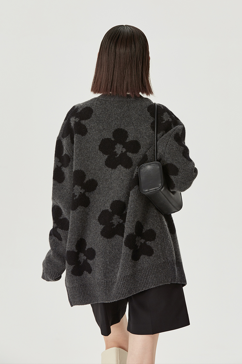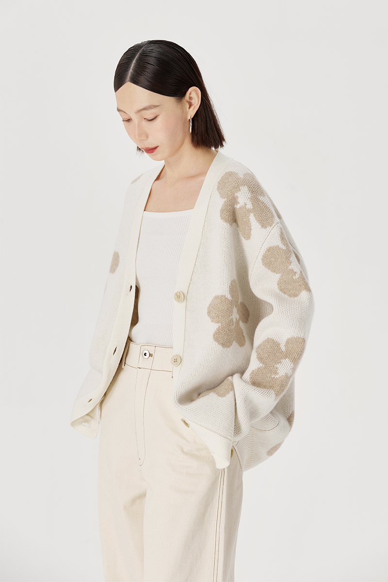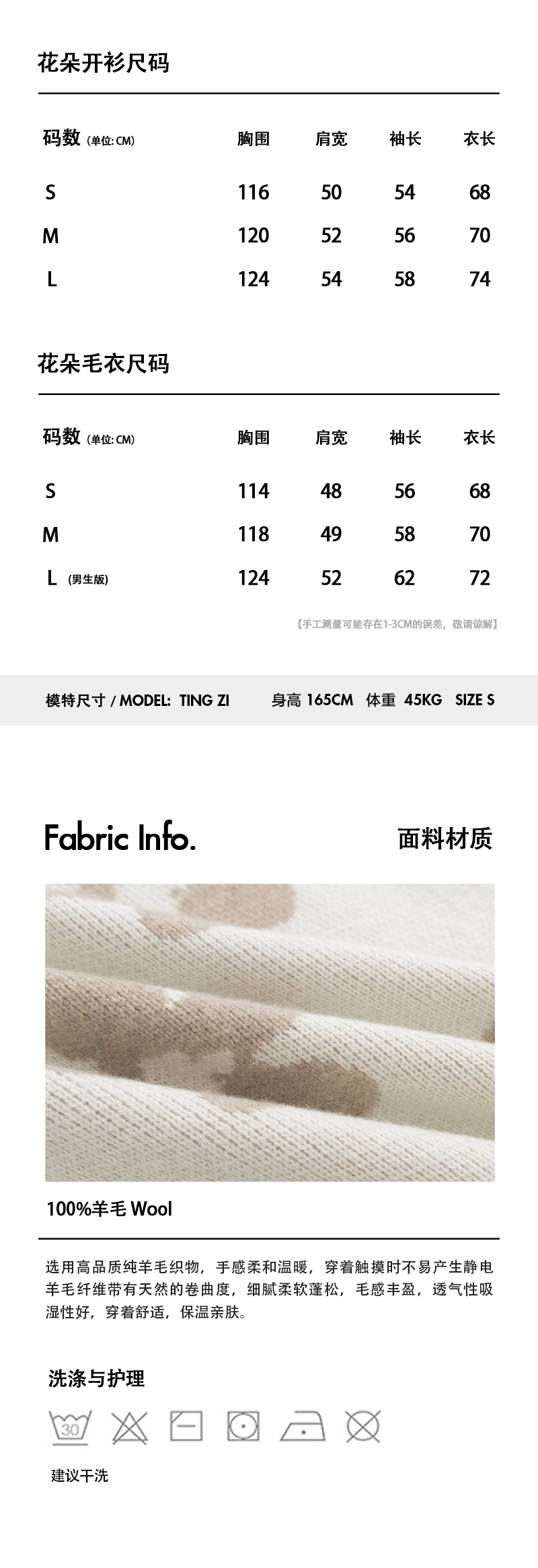 ForPoem 现货 22/FW花朵100羊毛针织开衫女秋季慵懒风外搭V领毛衣外套