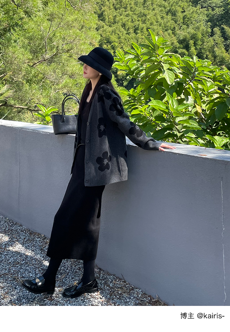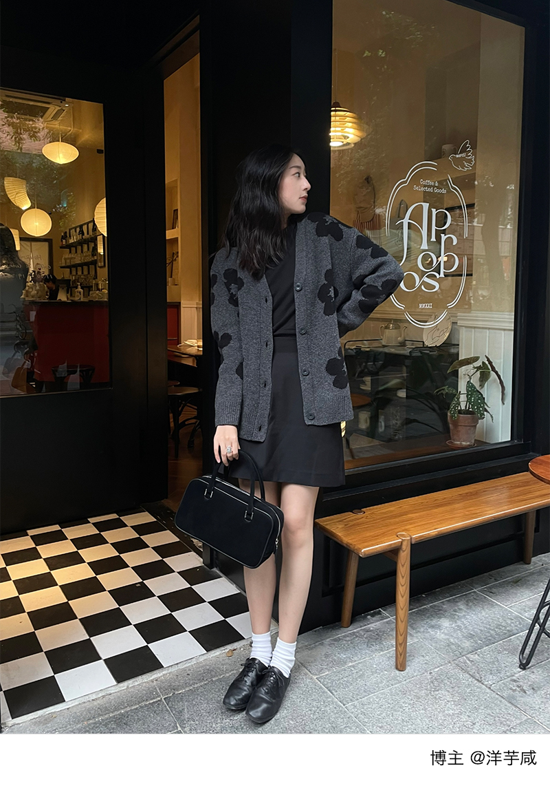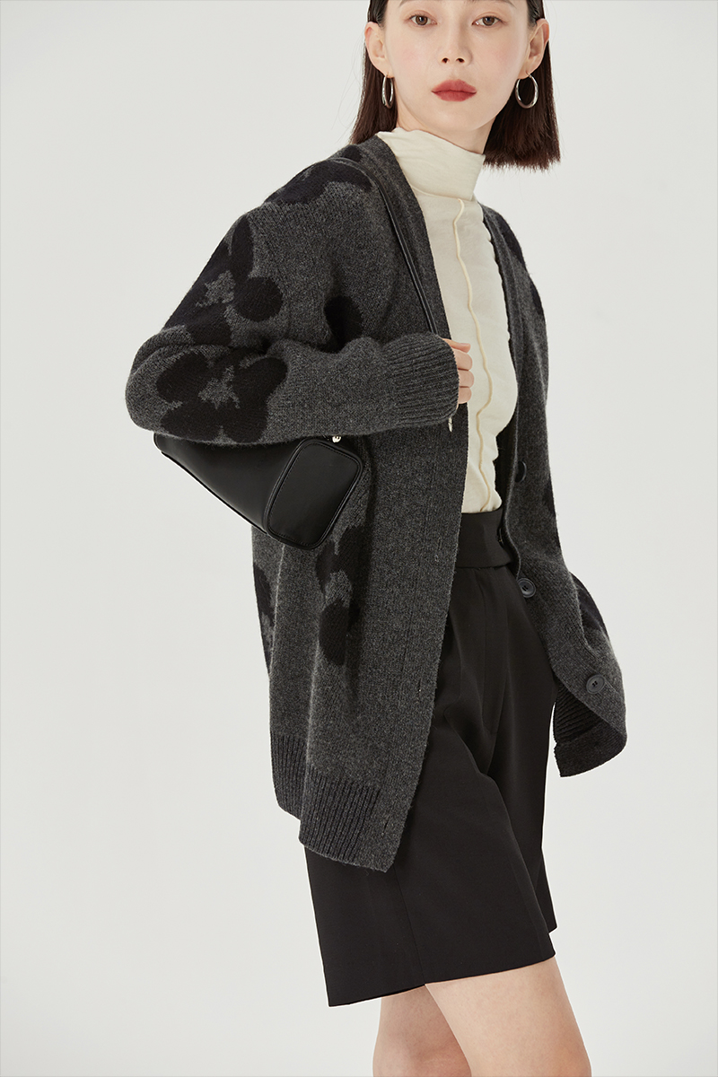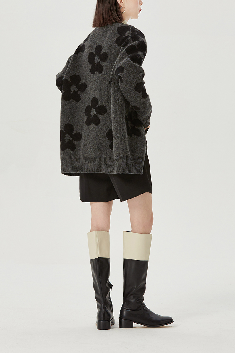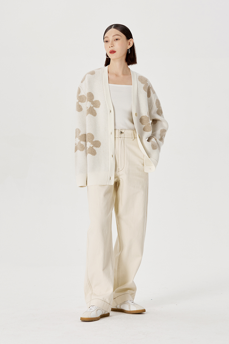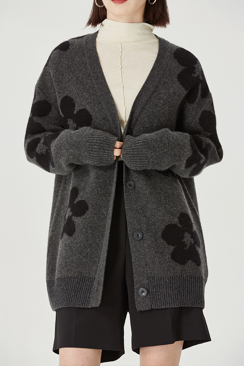ForPoem 现货 22/FW花朵100羊毛针织开衫女秋季慵懒风外搭V领毛衣外套