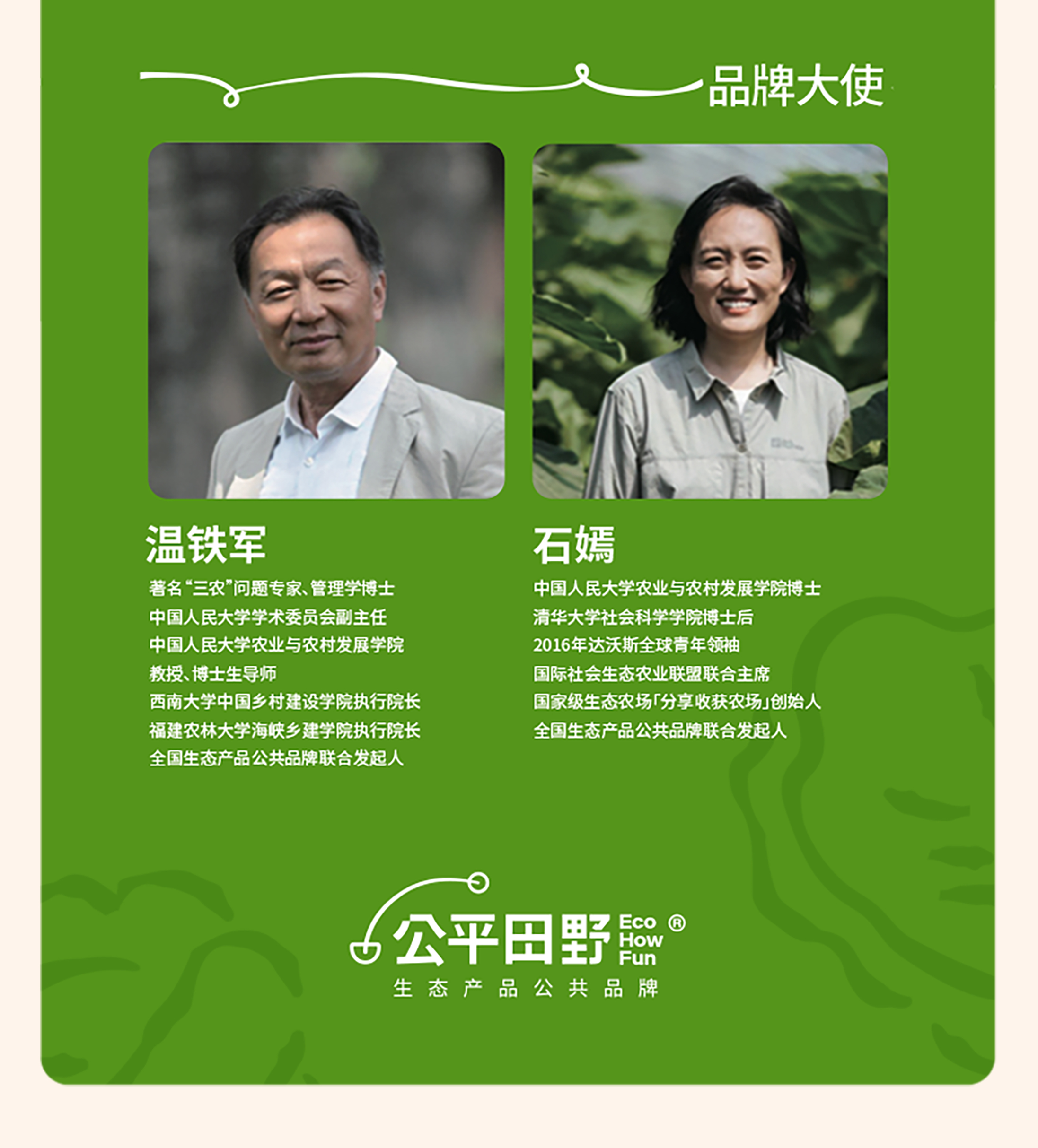 全国生态产品的公共品牌线上店铺,直接为生态生产者和消费者搭建共创共享平台,致力于为千家万户提供生态食物和环保用品,品牌slogan”为了一口好饭“!