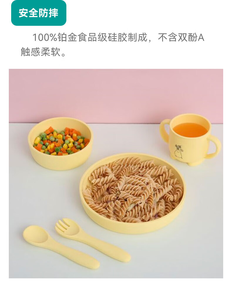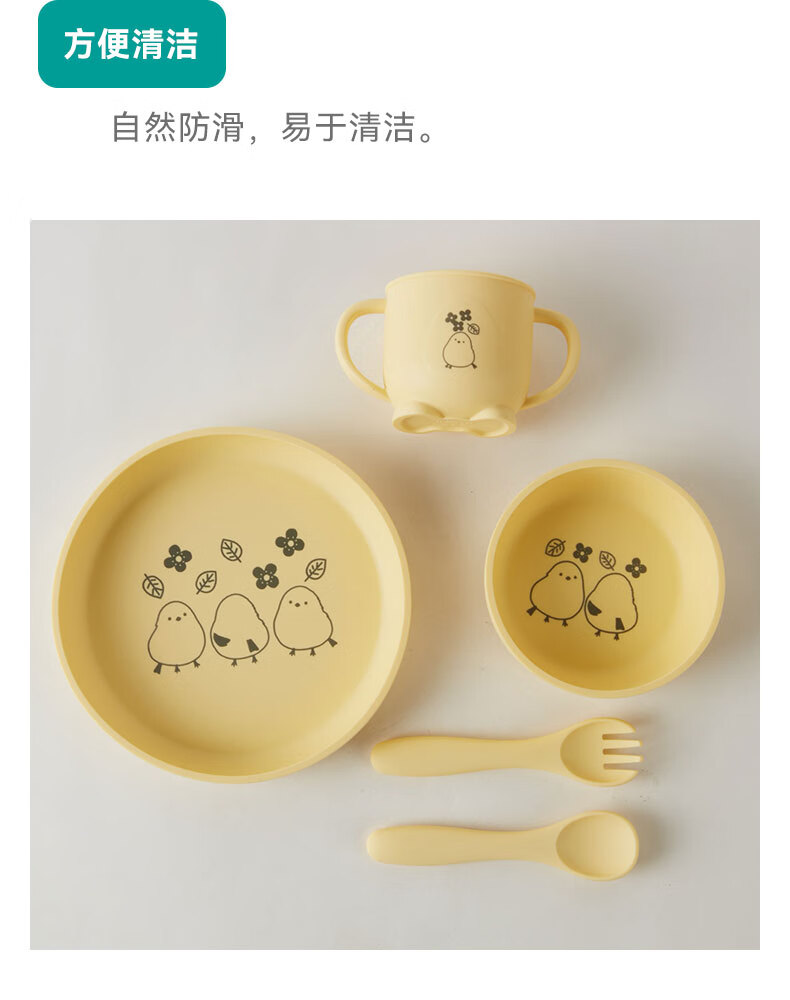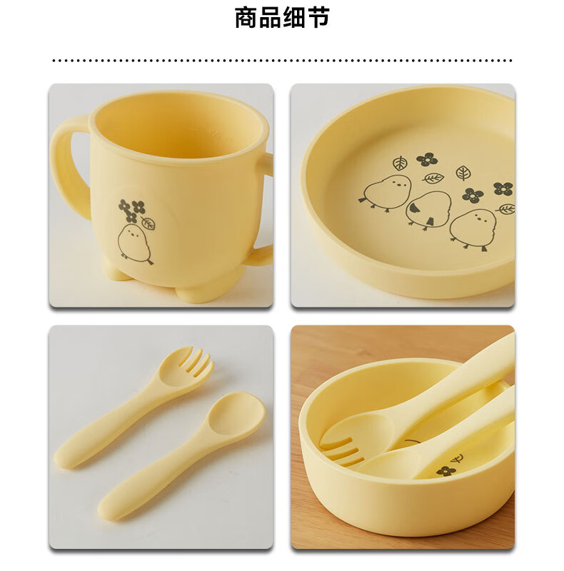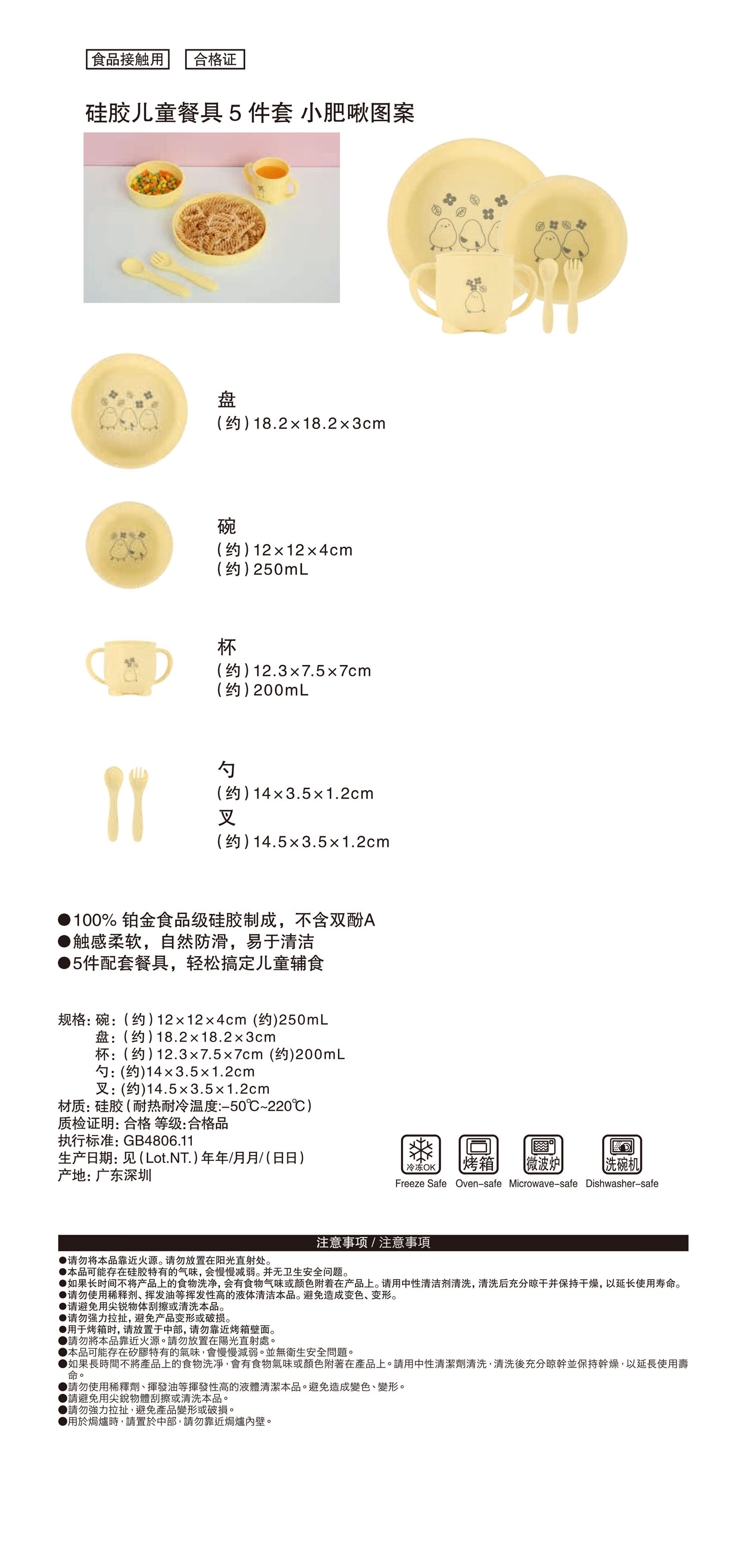 可爱防摔硅胶儿童餐具5件套卡通小肥啾