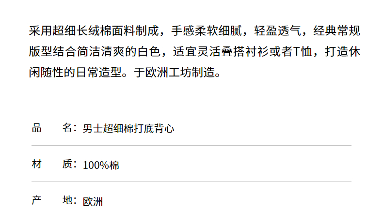 SUNSPEL男士春夏精纺长绒棉纯色打底背心经典舒适简约