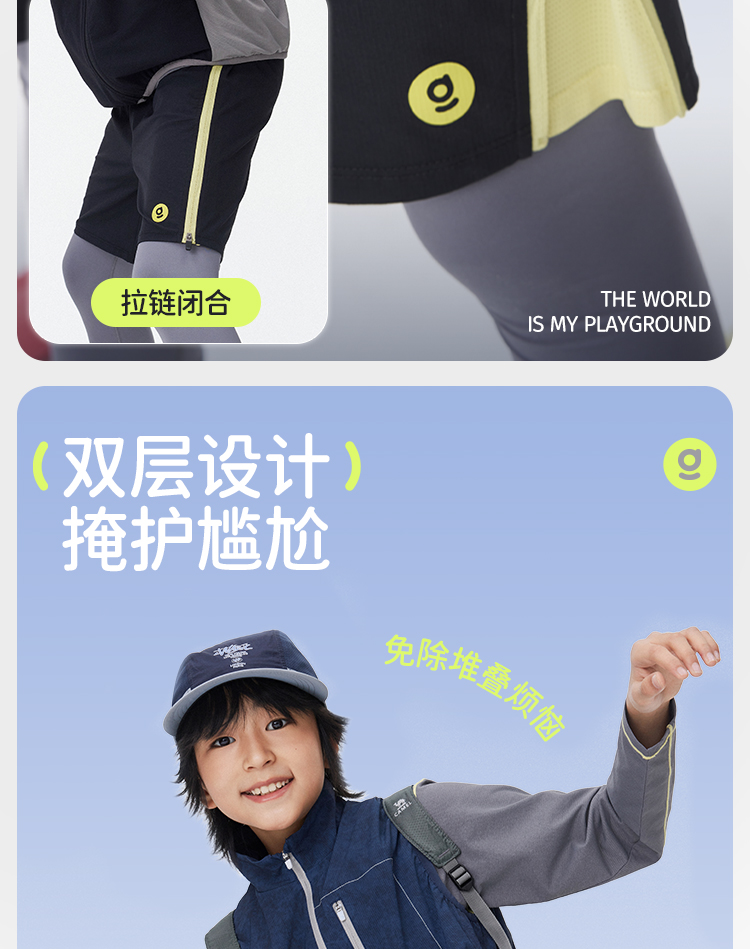 onmygame【百变造型】男童2025新款假两件春款儿童运动长裤训练裤KEB1B810550