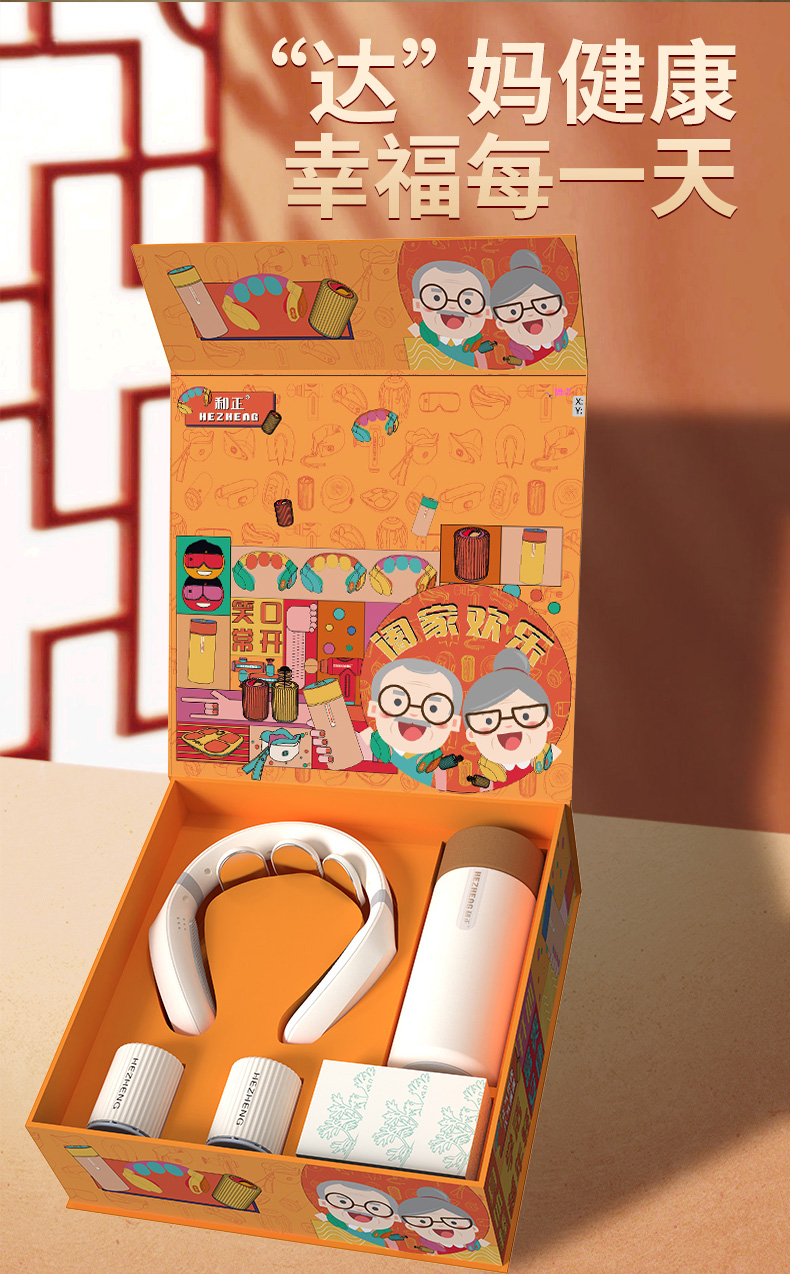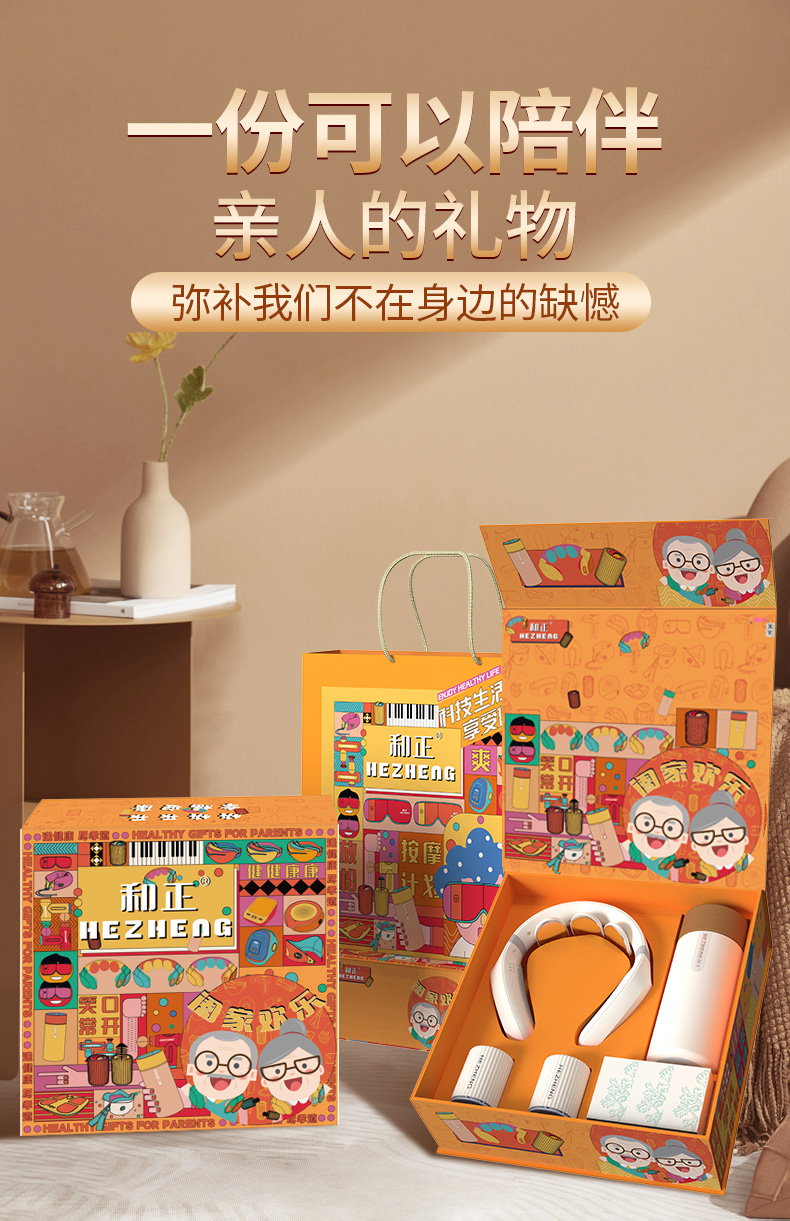 和正 孝心礼盒 送长辈父母生日礼物感恩礼品 HZ-LOVE-3(颈椎按摩器+智能温显杯+艾灸罐*2)