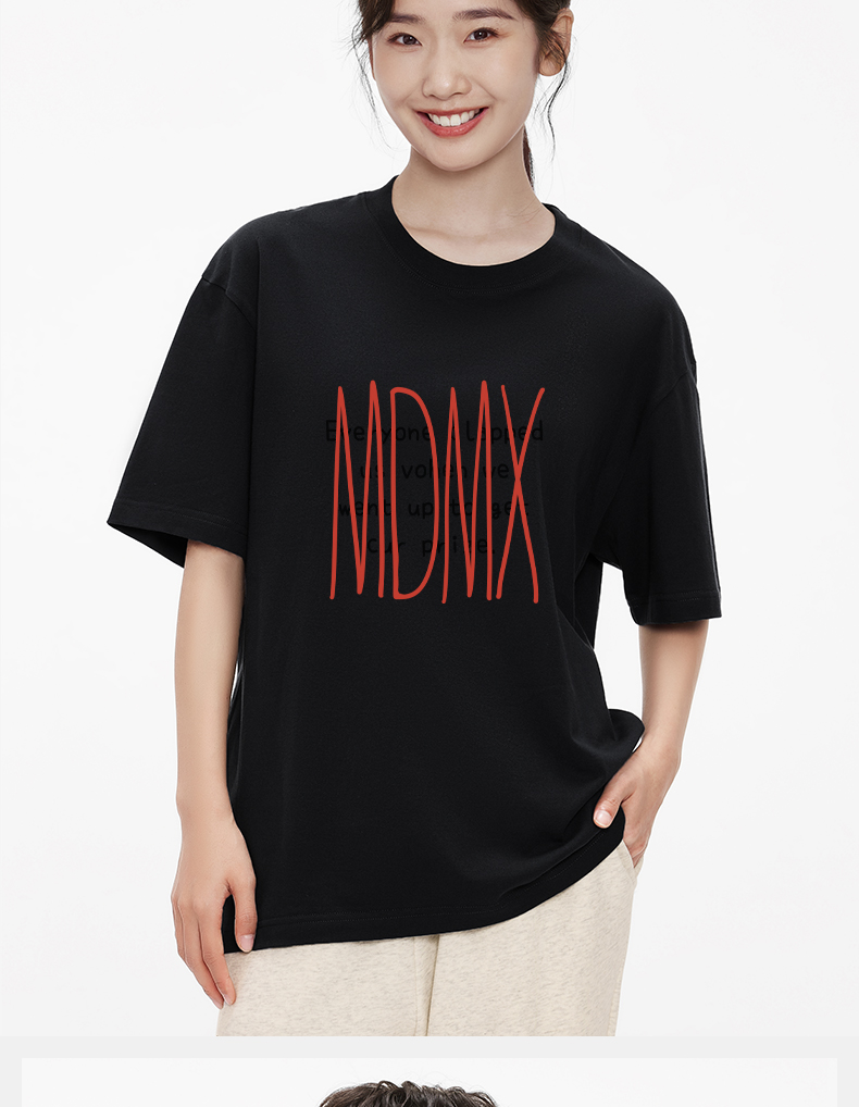 「棉的美学」极简休闲纯棉字母印花T恤2025夏季宽松潮流百搭短袖