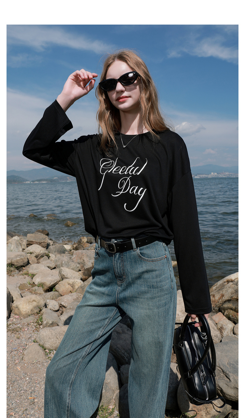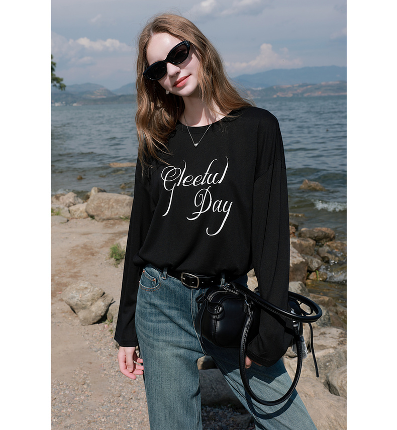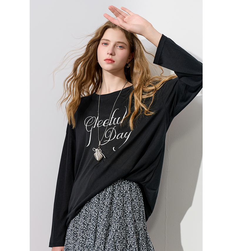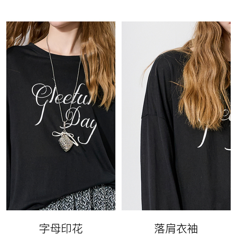 【莱赛尔】三彩2025秋季新款宽松圆领长袖字母T恤套头衫休闲M