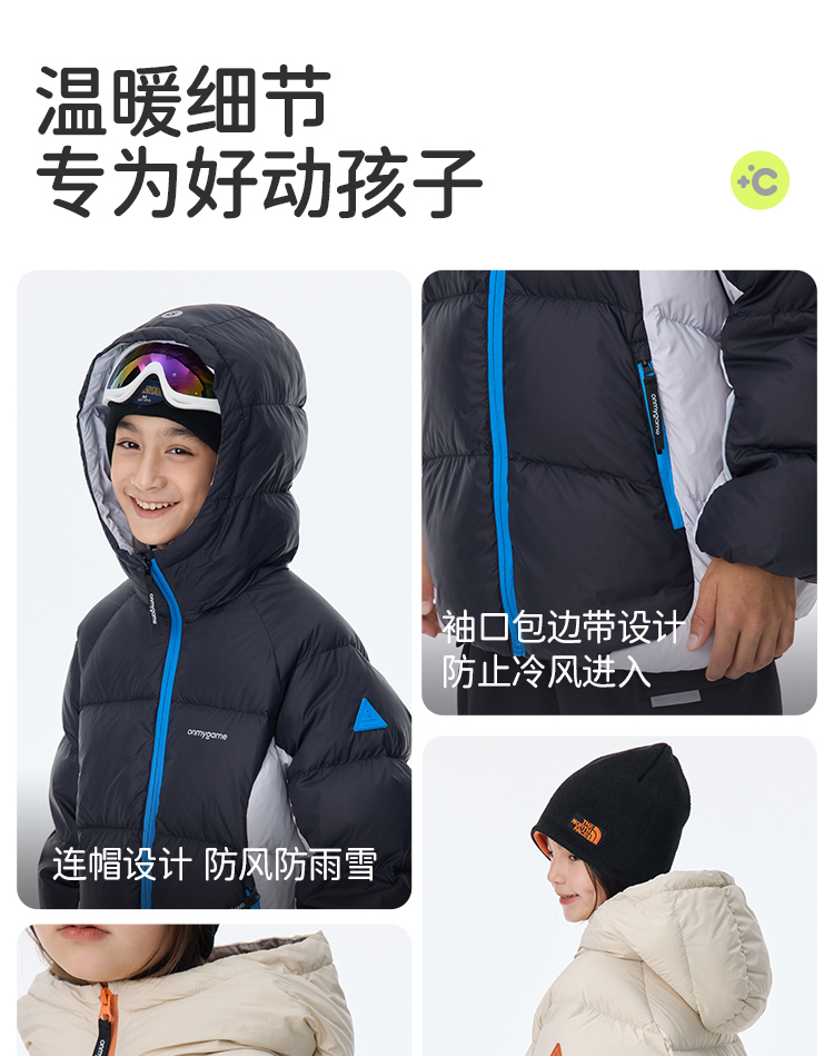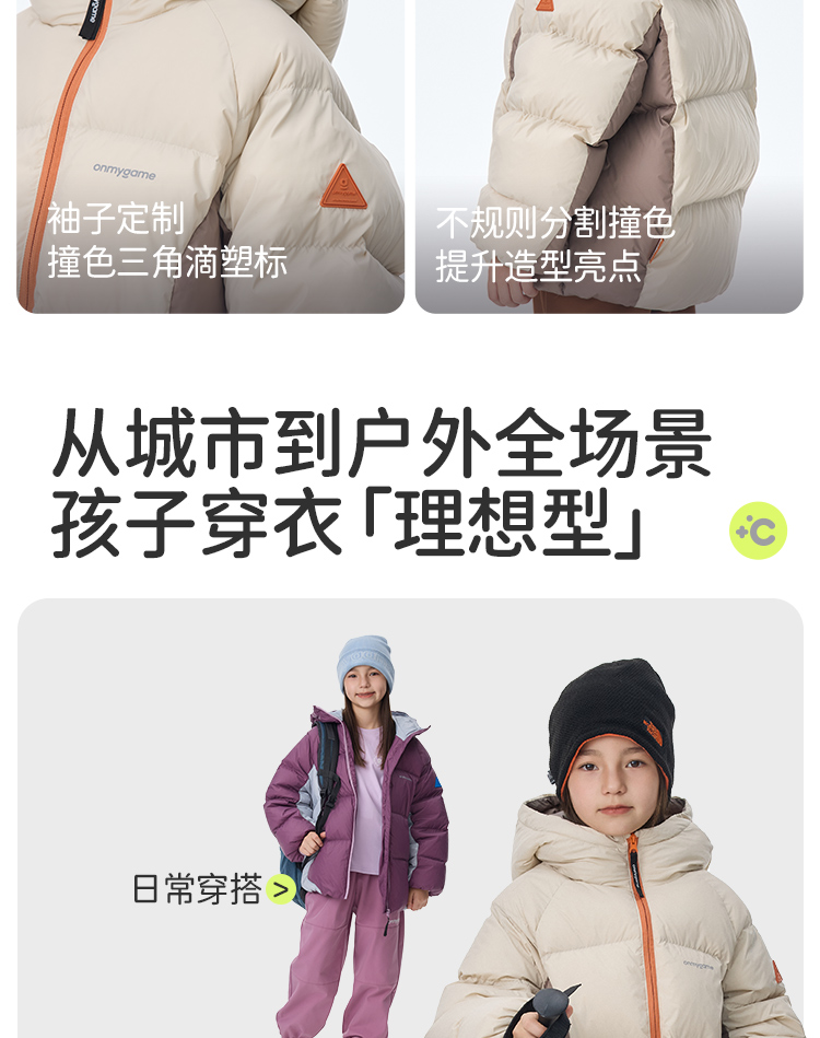 onmygame【Hybrid灵动】儿童羽绒服男女童外套三防秋冬款KD80E110486