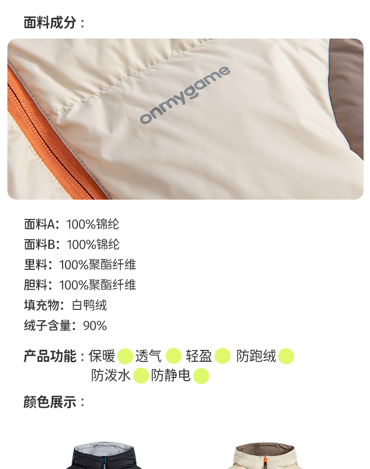 onmygame【轻暖系列】儿童三防羽绒马甲秋冬装男女童背心运动外套