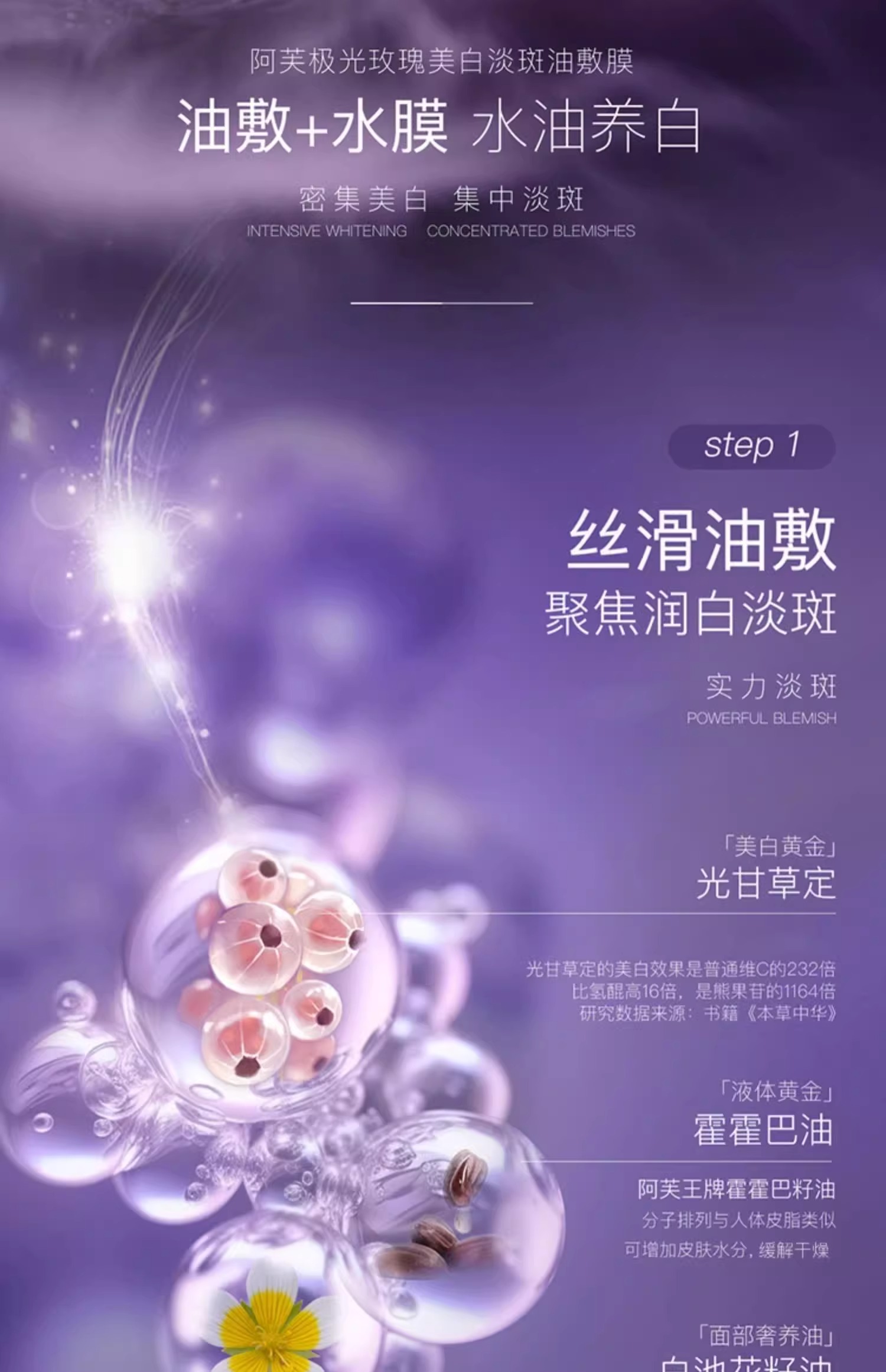 阿芙白月光美白淡斑油敷膜(1g+0.35ml+25ml)*6片/盒【三特证】