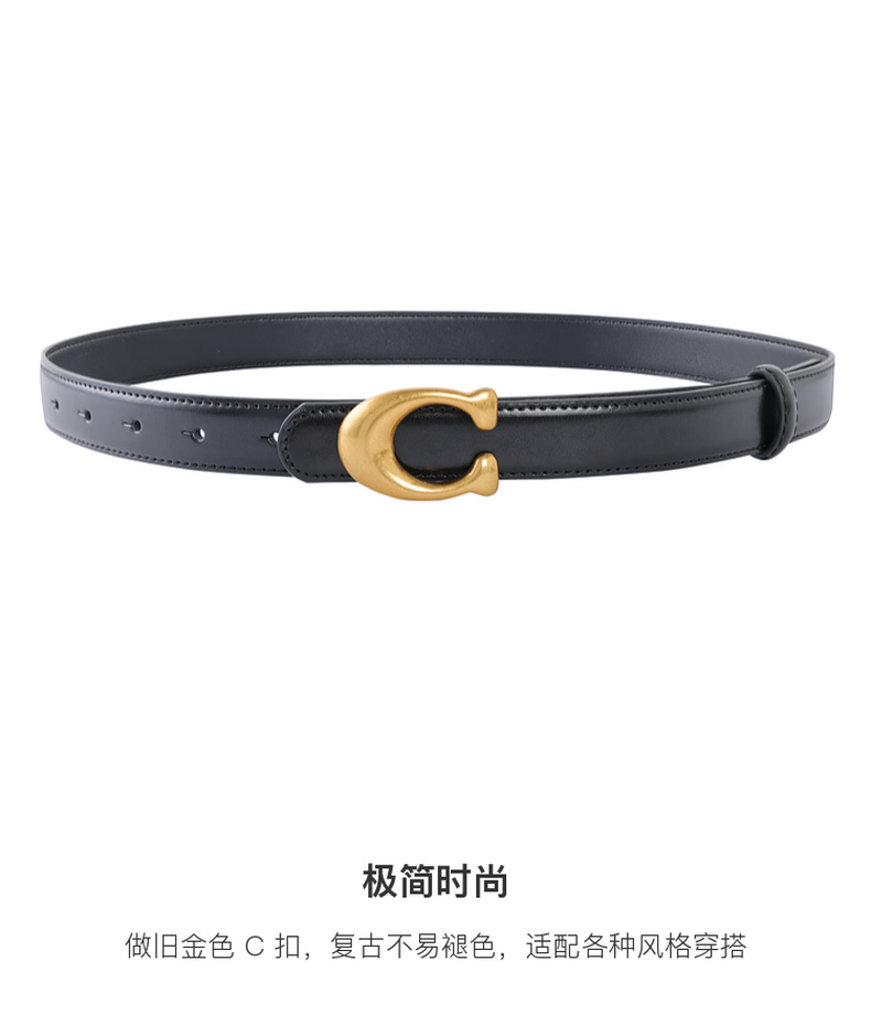 三彩2025新款皮腰带复古C型金属扣窄版皮带二层牛皮简约时尚女