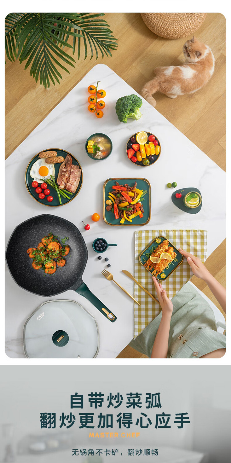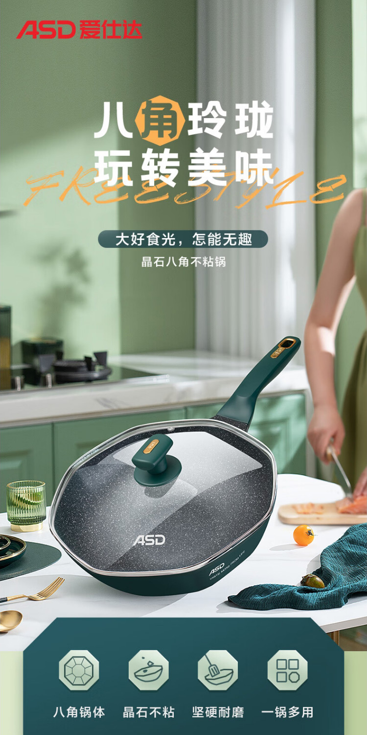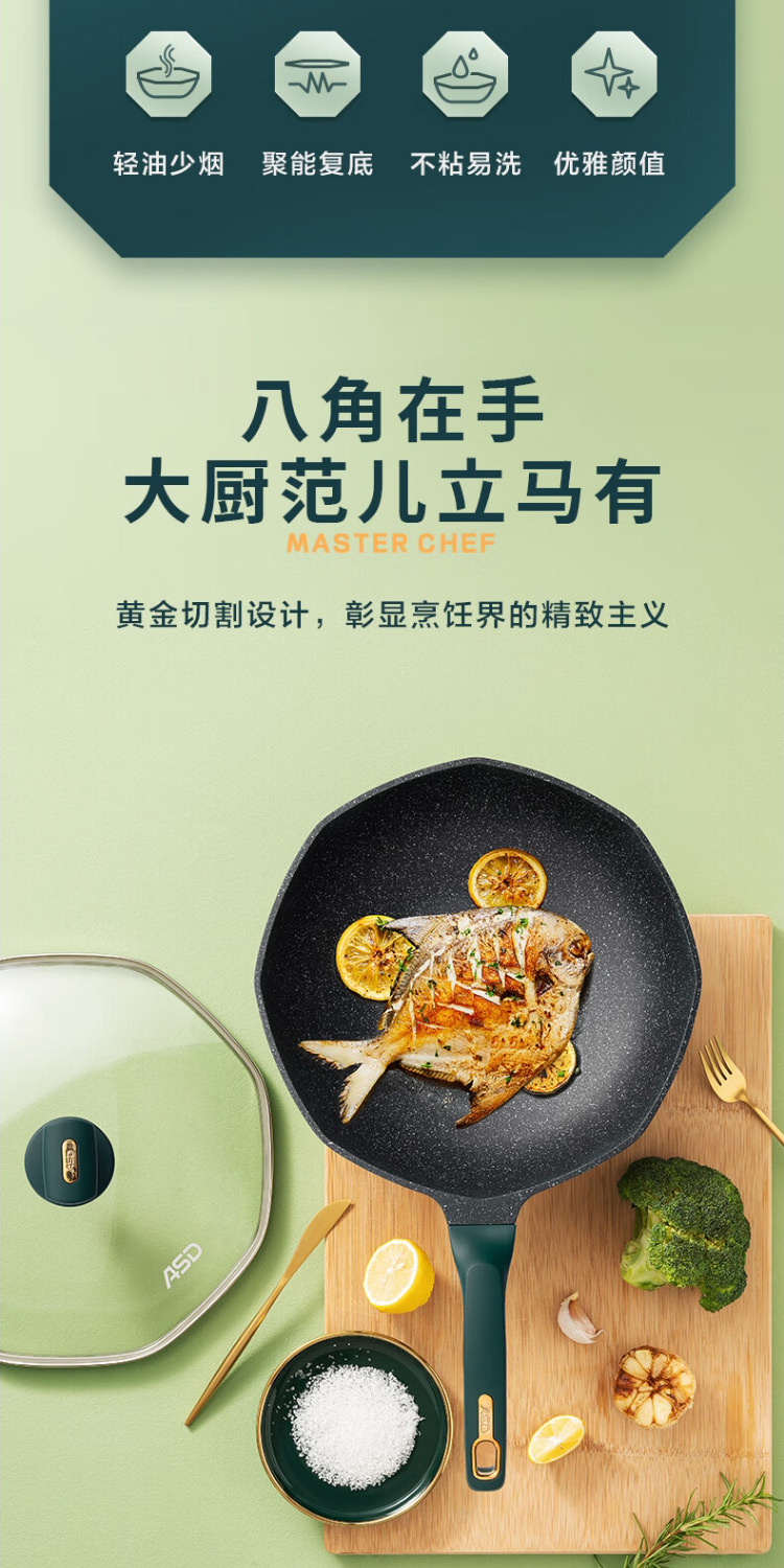 爱仕达CL32S13WG-G晶石八角不粘锅32cm