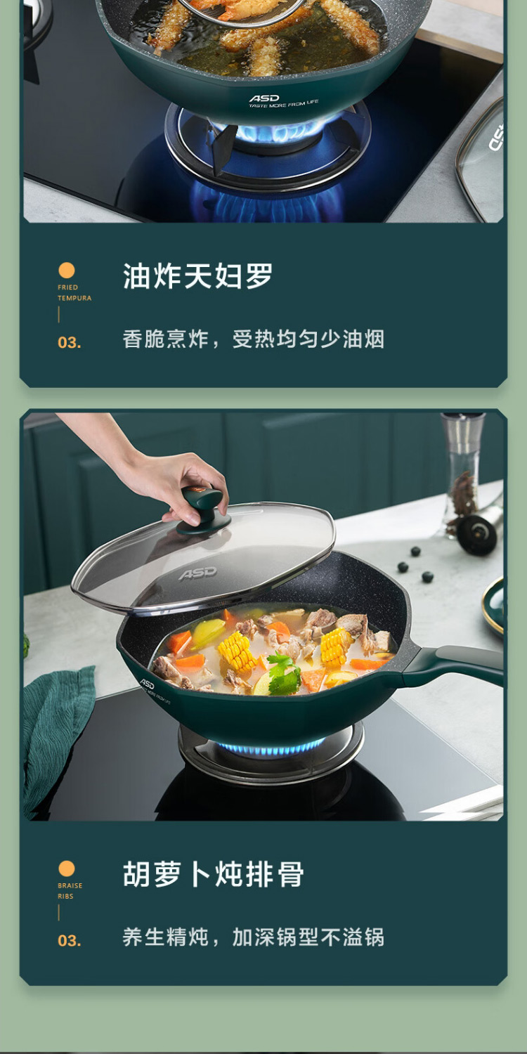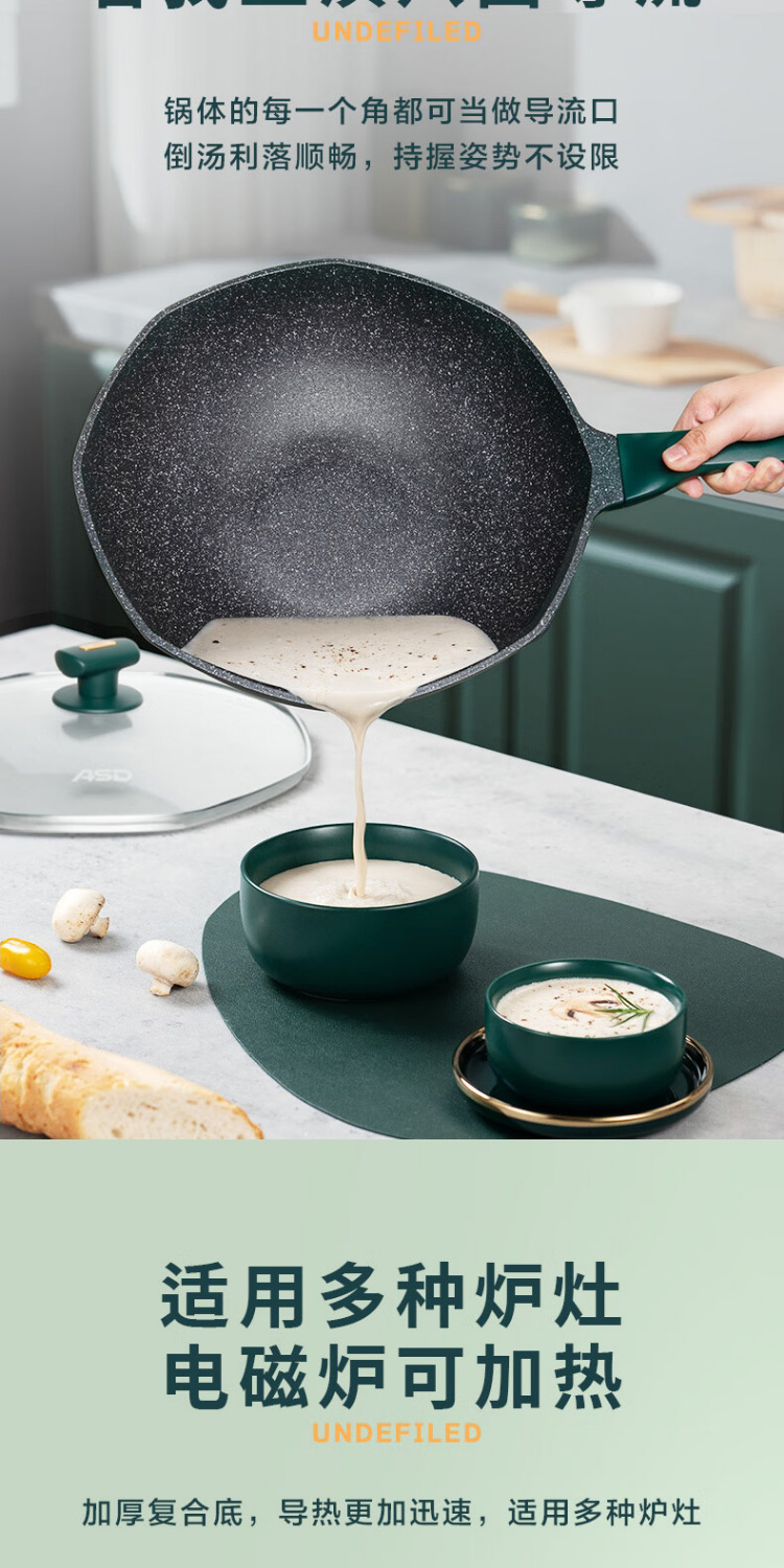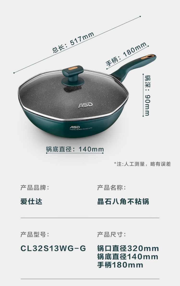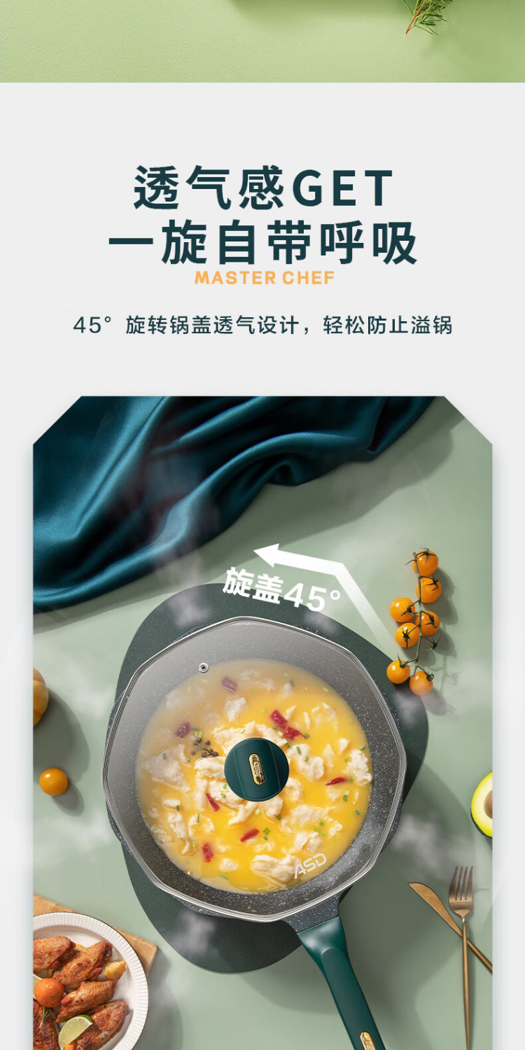 爱仕达CL32S13WG-G晶石八角不粘锅32cm