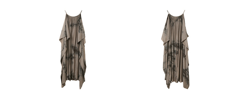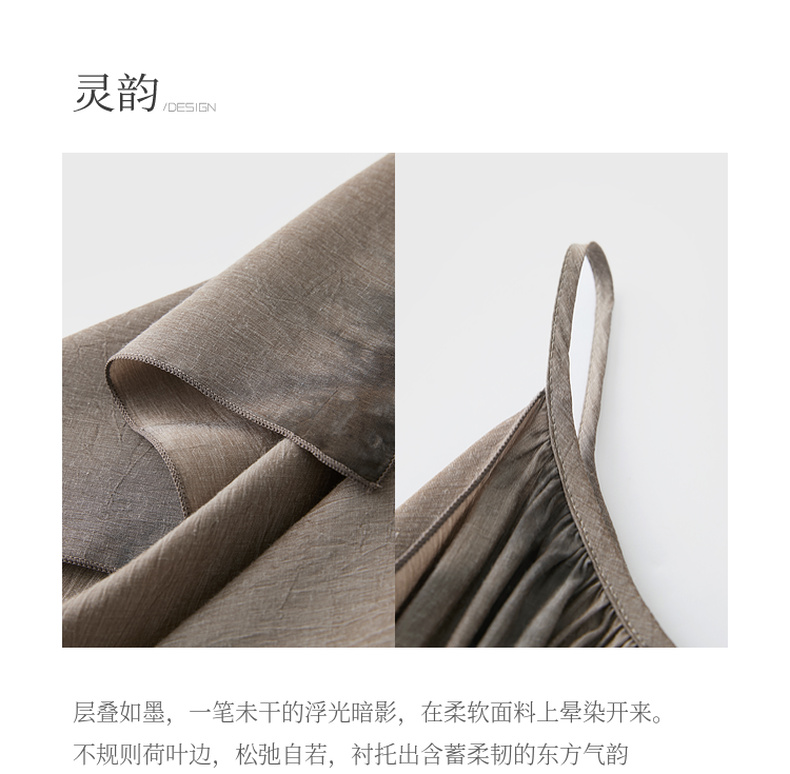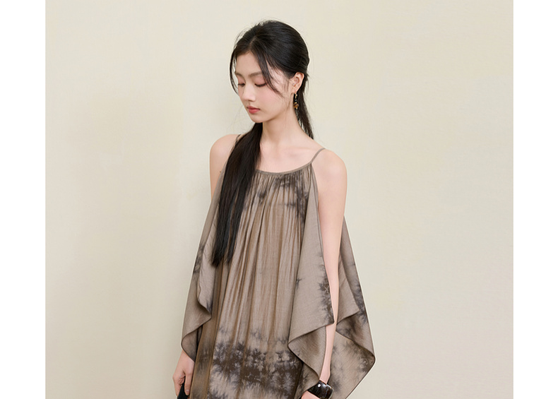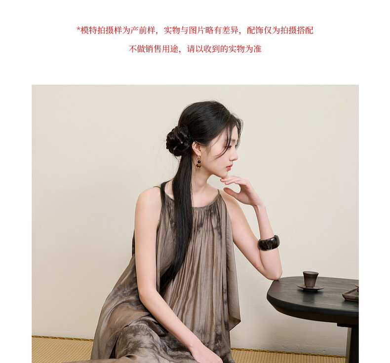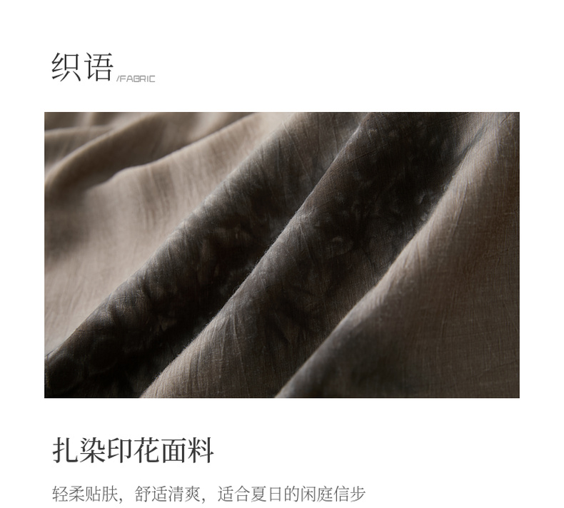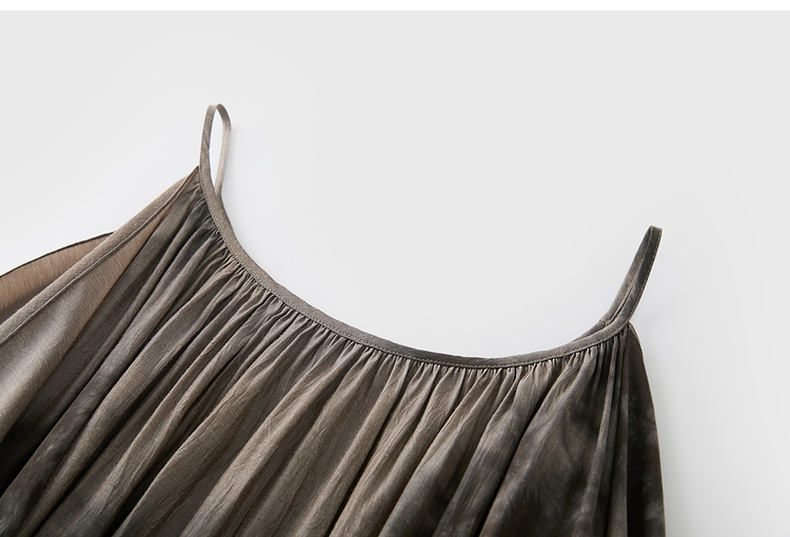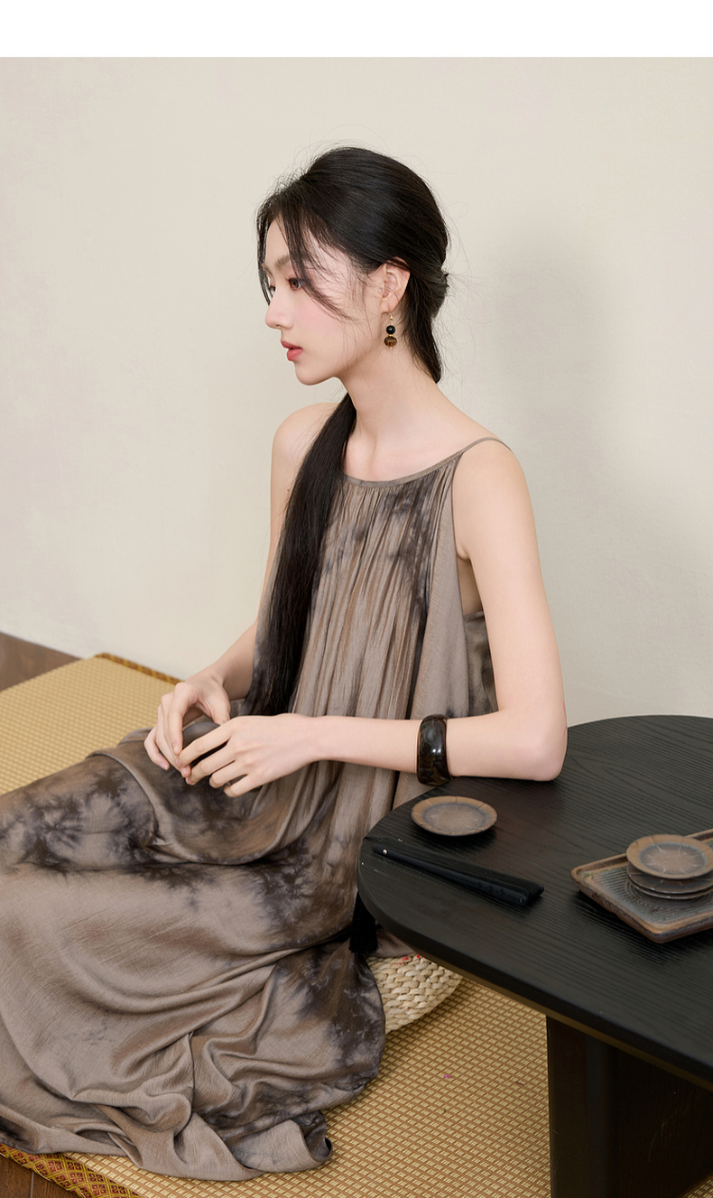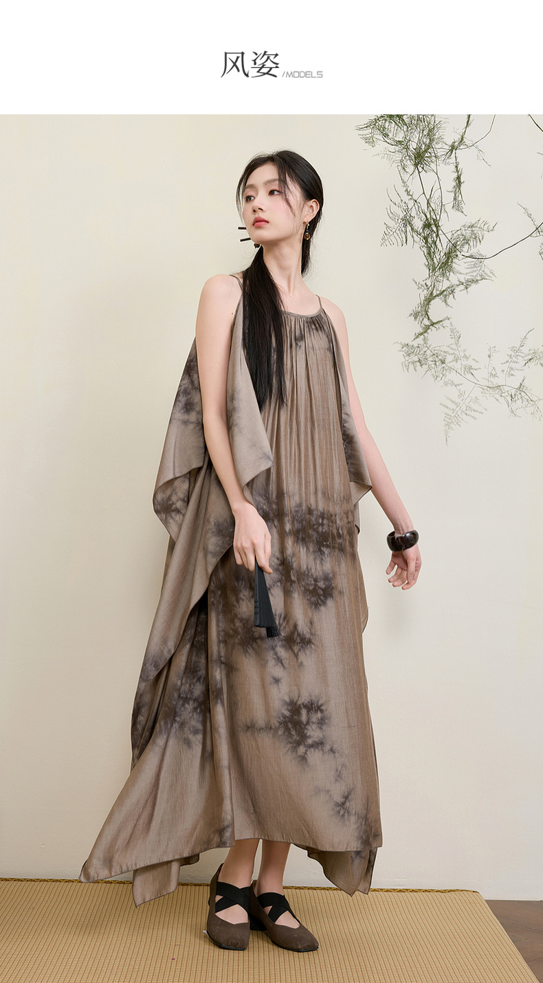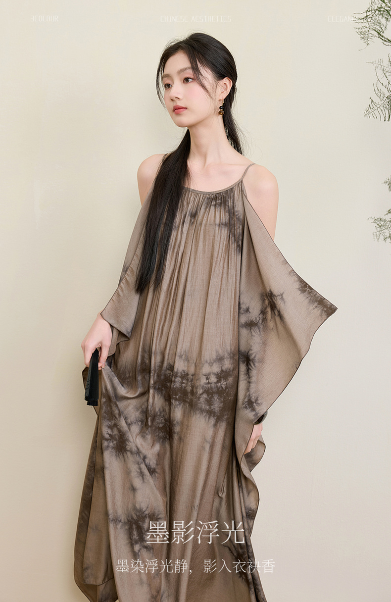 三彩【墨影浮光】2025夏季新款新中式扎染印花不规则连衣裙C