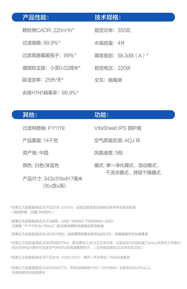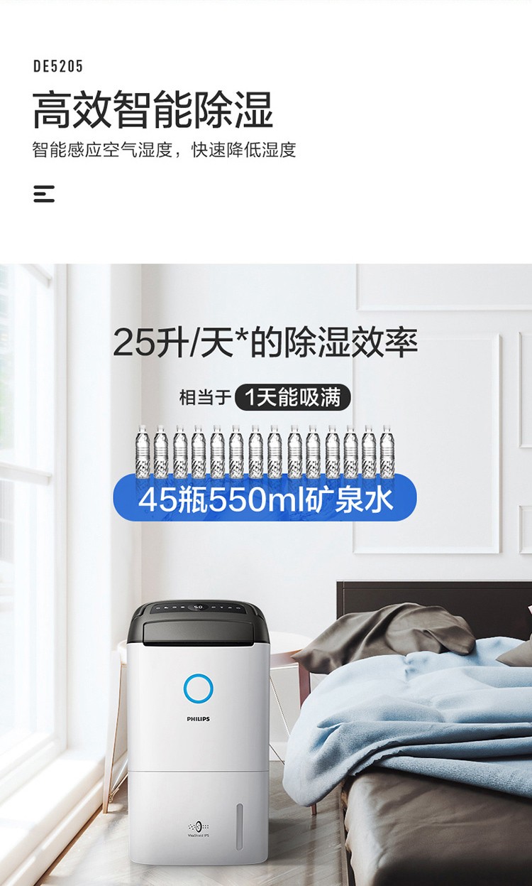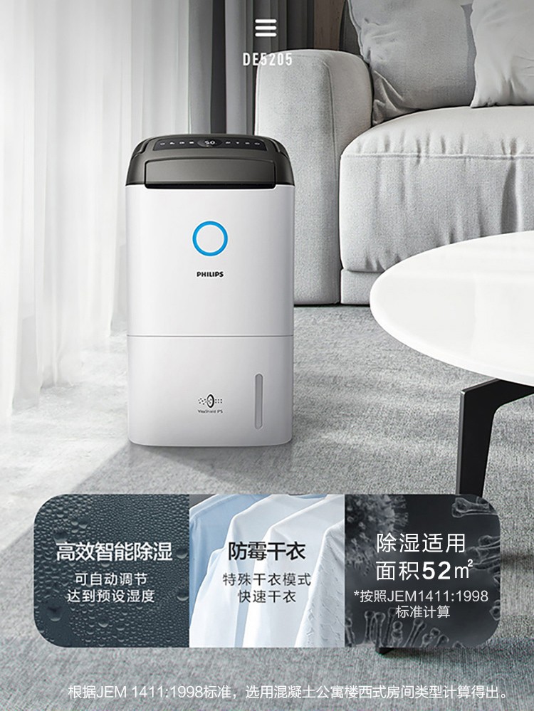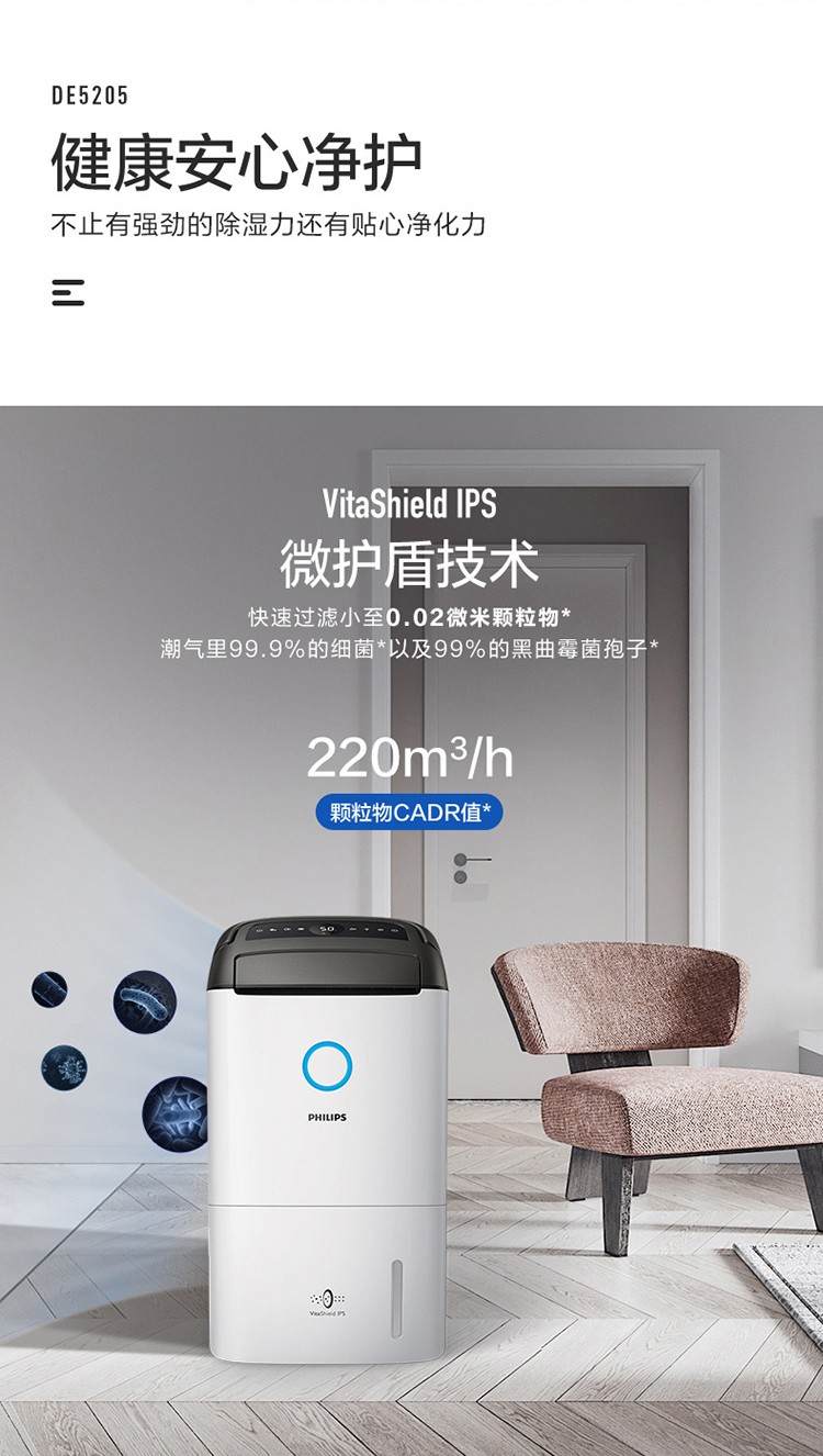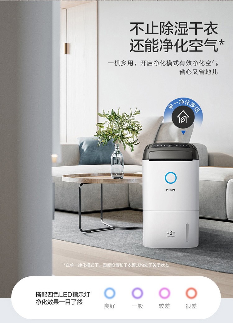飞利浦(PHILIPS) 空气净化器一体机(净化/干衣) 家用抽湿机干衣机 -DE5205/00