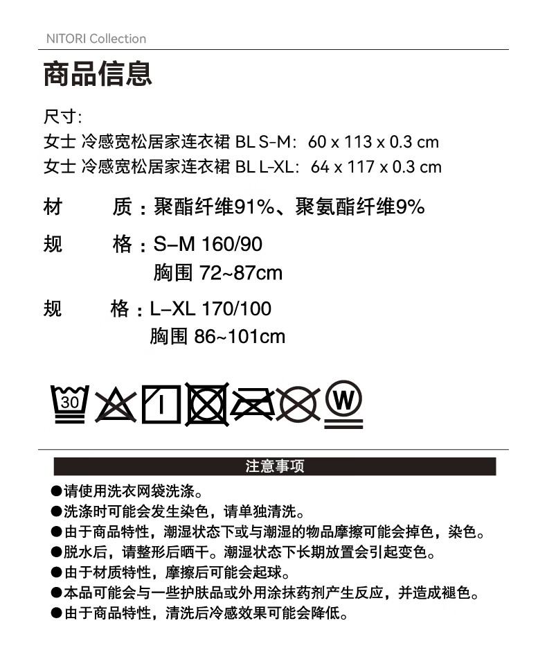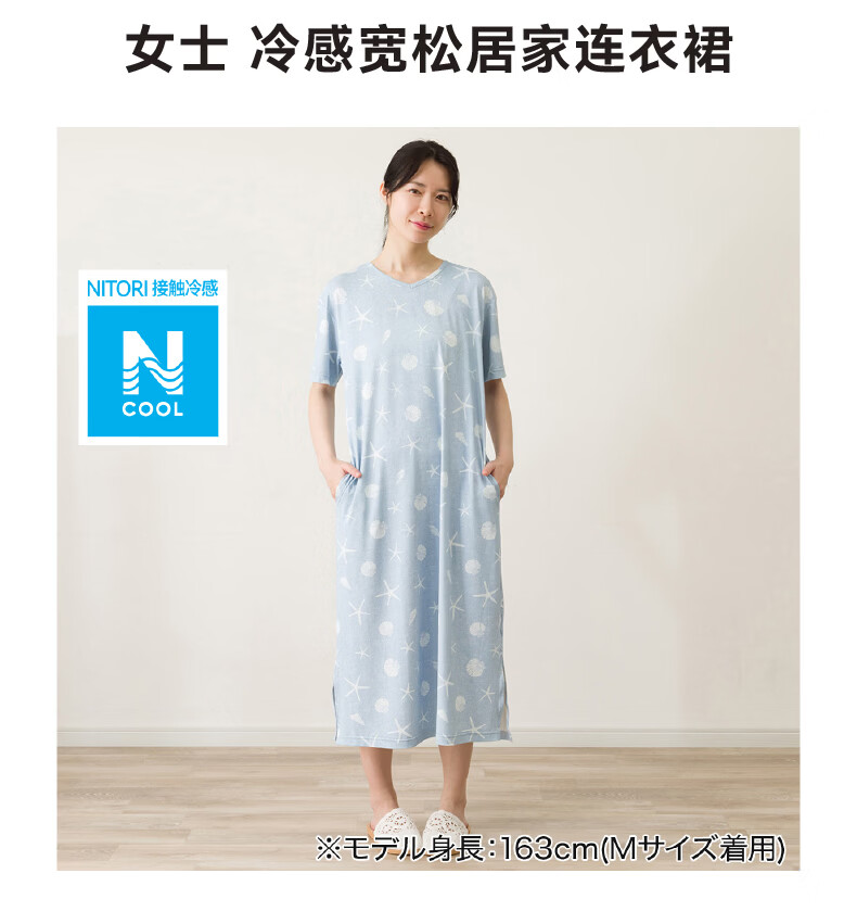 NITORI宜得利家居 女士凉感睡衣冷感夏季短袖连衣裙居家外出宽松连衣裙